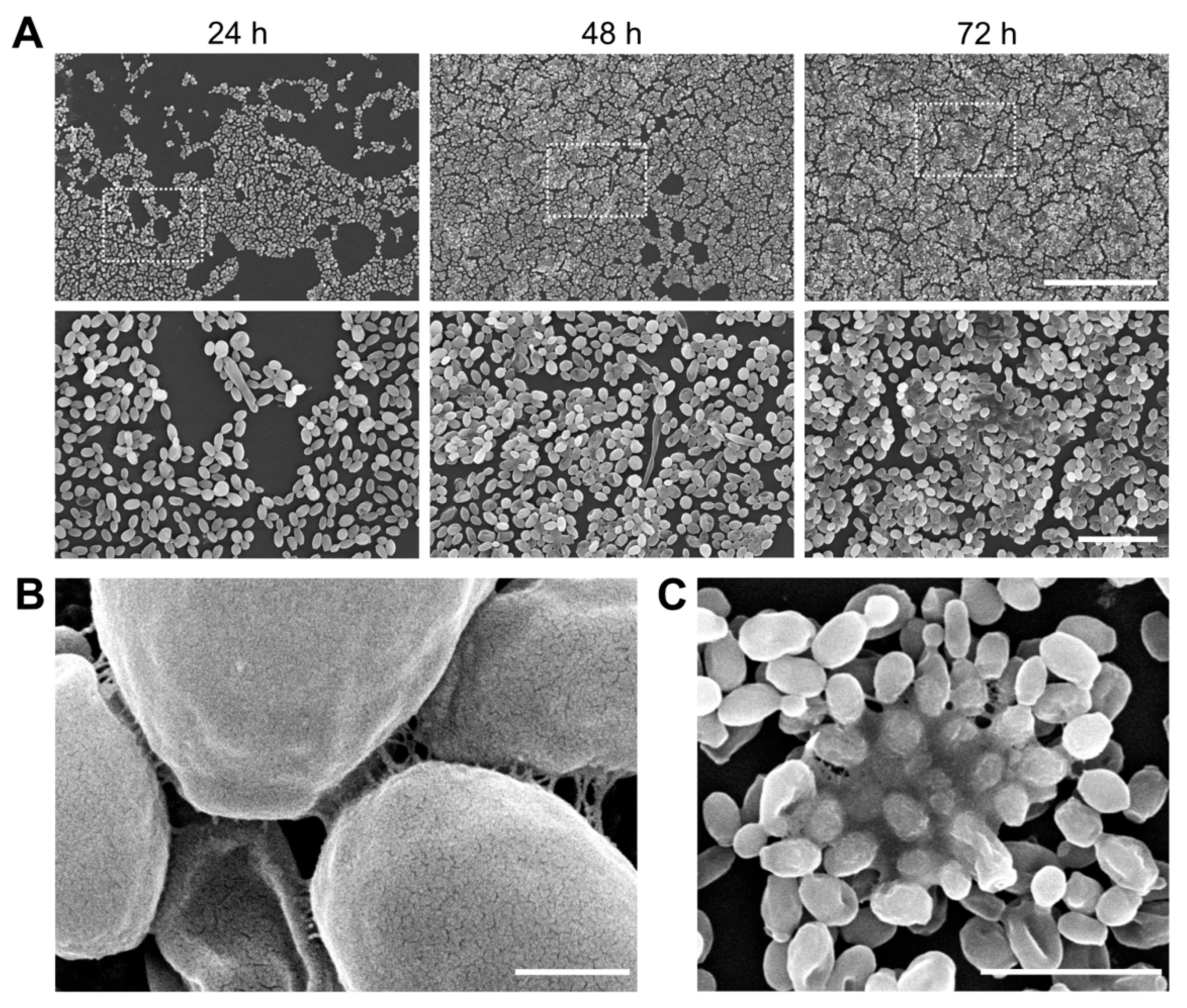 - Malinovská, Z.; Čonková, E.; Váczi, P. Biofilm Formation in Medically Important Candida Species. J. Fungi 2023, 9, 955. [Google Scholar] [CrossRef] [PubMed]