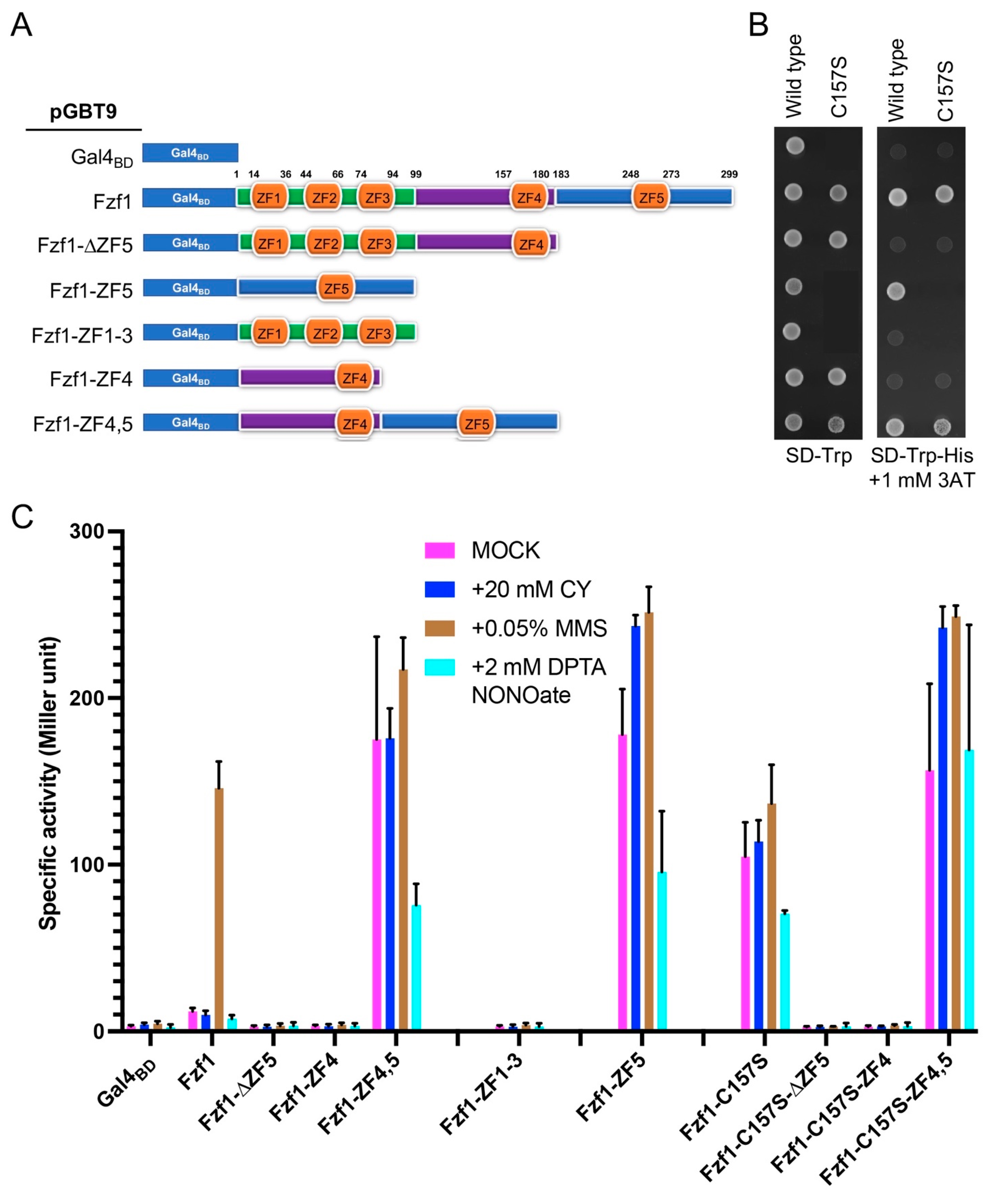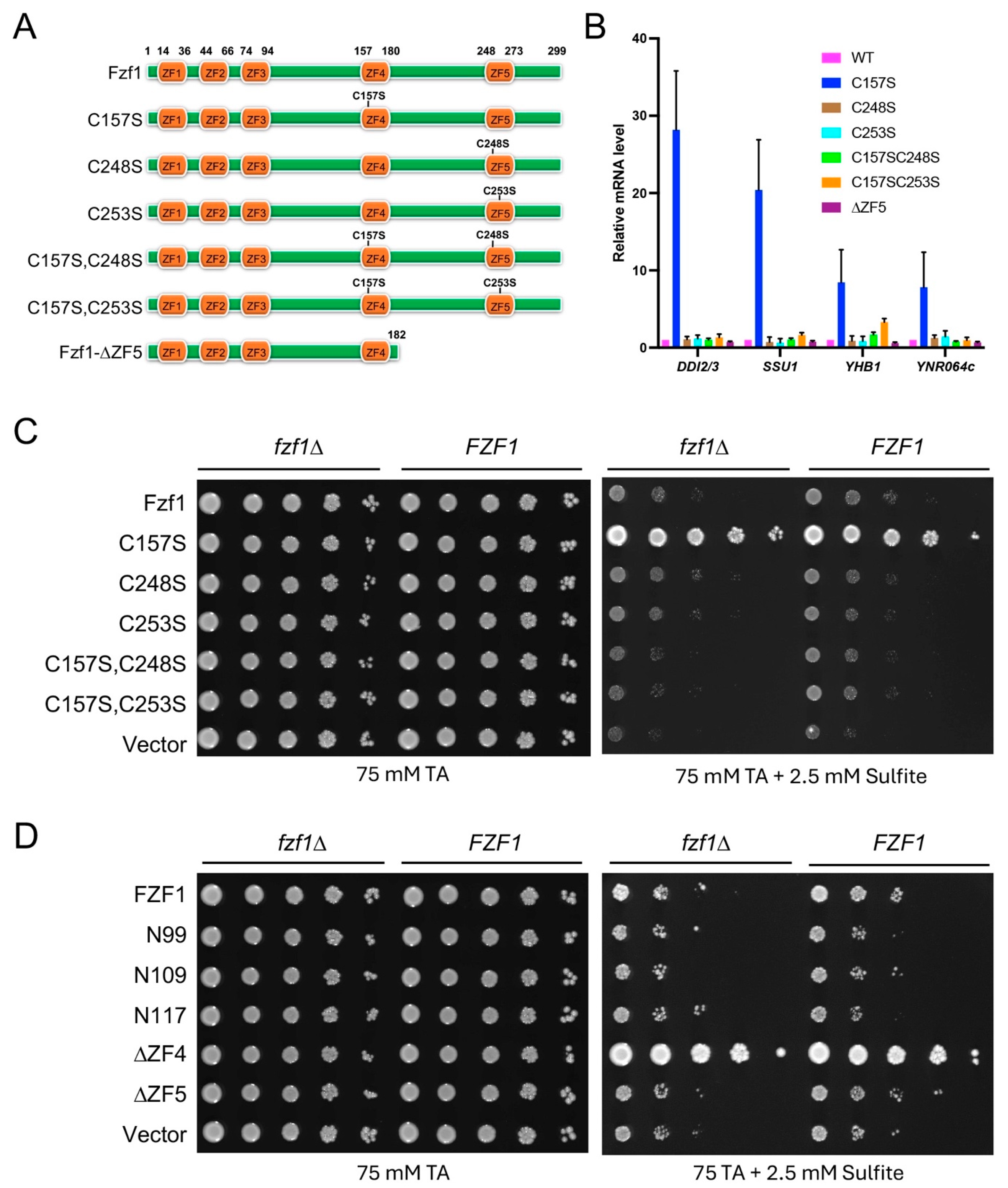 3.3. FZF1 Is Dominant over fzf1-ZF5 Mutations