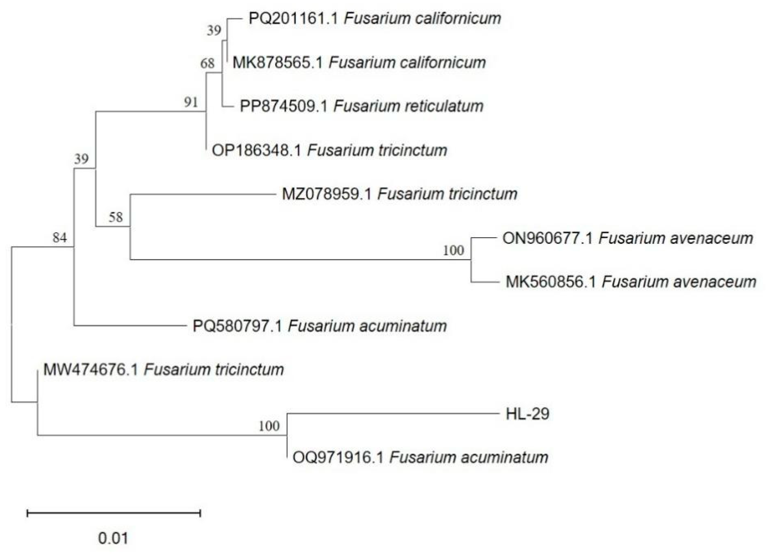 Chicago/Turabian StyleYang, Lan, Chao Peng, Haixia Zhu, and Yongqiang Ma. 2026. "The Fungus HL-29: A Promising Weed Pathogen with Bioherbicidal Potential and Crop Safety" Journal of Fungi 12, no. 1: 17. https://doi.org/10.3390/jof12010017