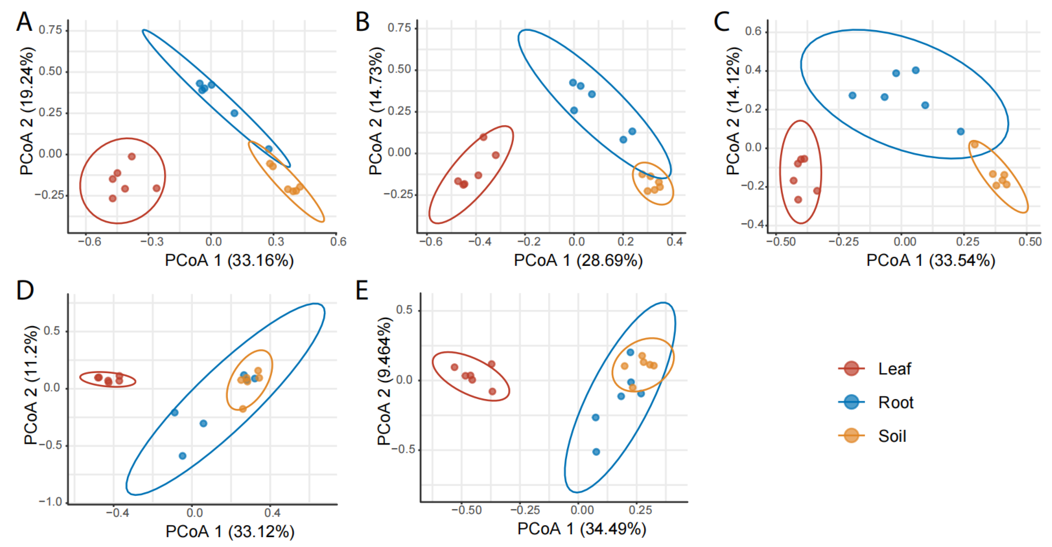 4.2. Variety Effect Is Stronger on Endophytic Microbiota in the Pummelo Phyllosphere than in the Rhizosphere