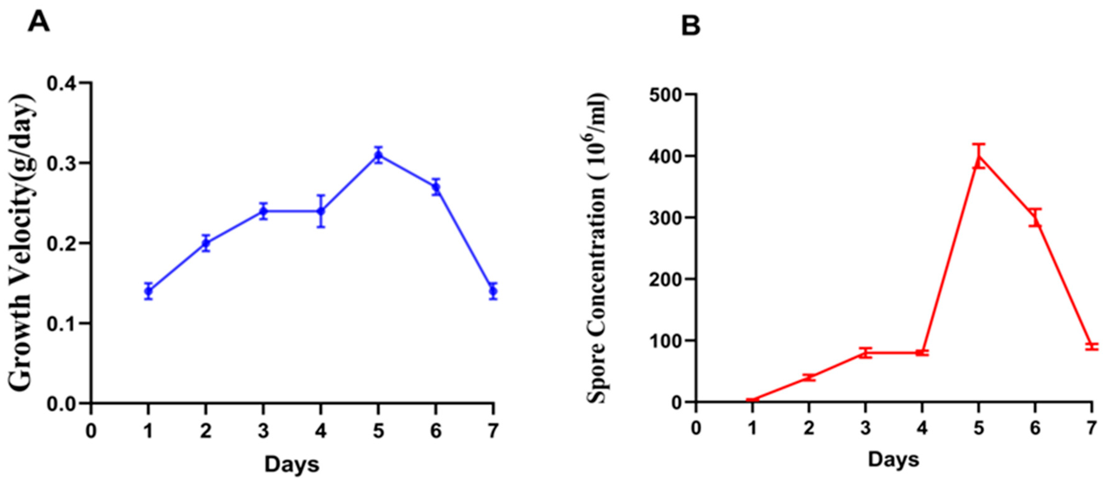 3.1. Growth Kinetics of F. verticillioides