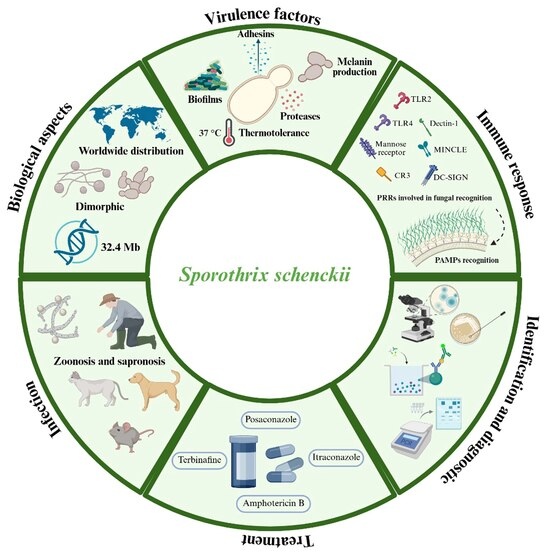 Chicago/Turabian StyleGómez-Gaviria, Manuela, Dario A. Baruch-Martínez, Nathália Faria Reis, Andréa Regina de Souza Baptista, and Héctor M. Mora-Montes. 2026. "Current Insights into Sporothrix schenckii: From Basic Biology to Virulence Mechanisms" Journal of Fungi 12, no. 1: 4. https://doi.org/10.3390/jof12010004