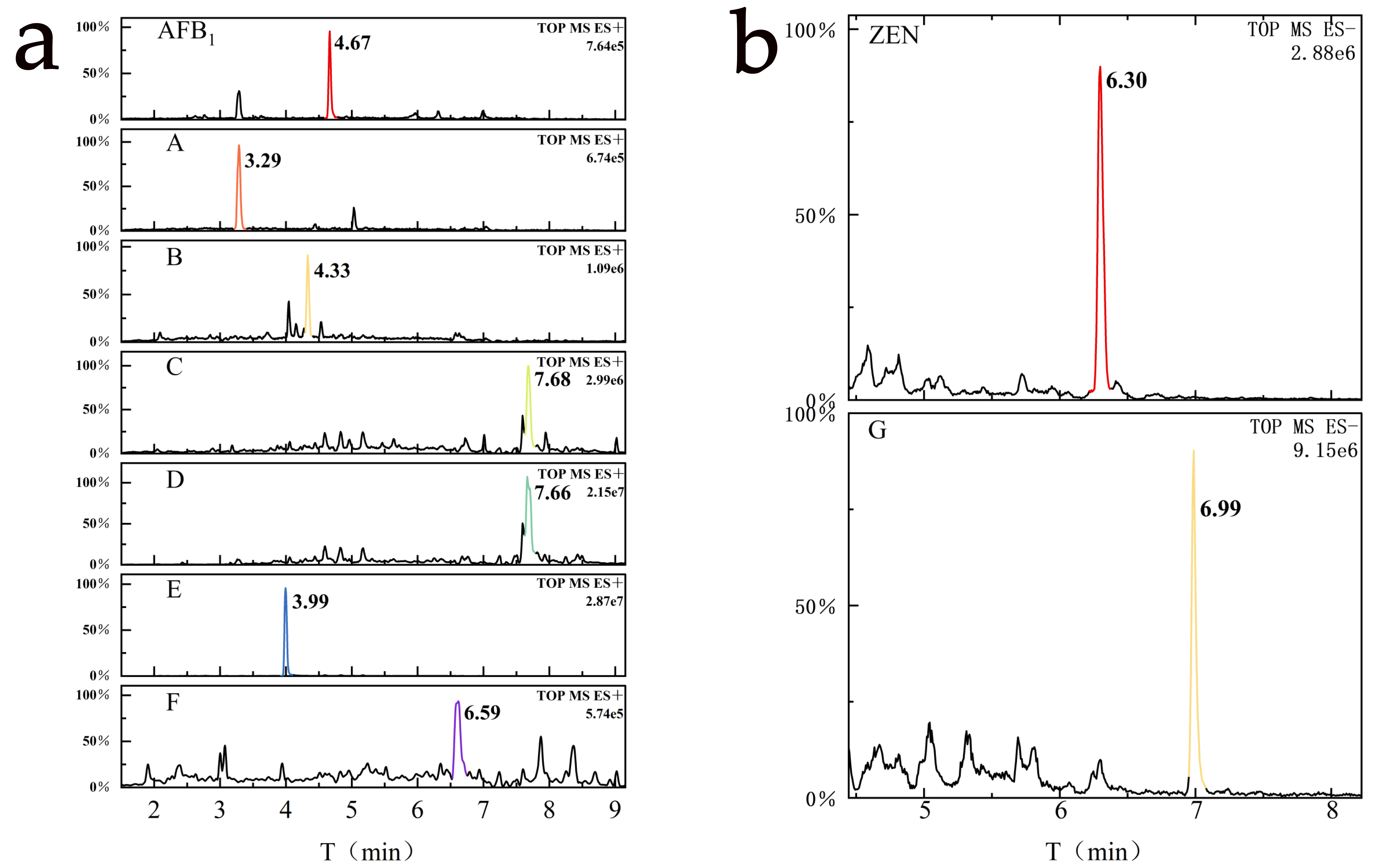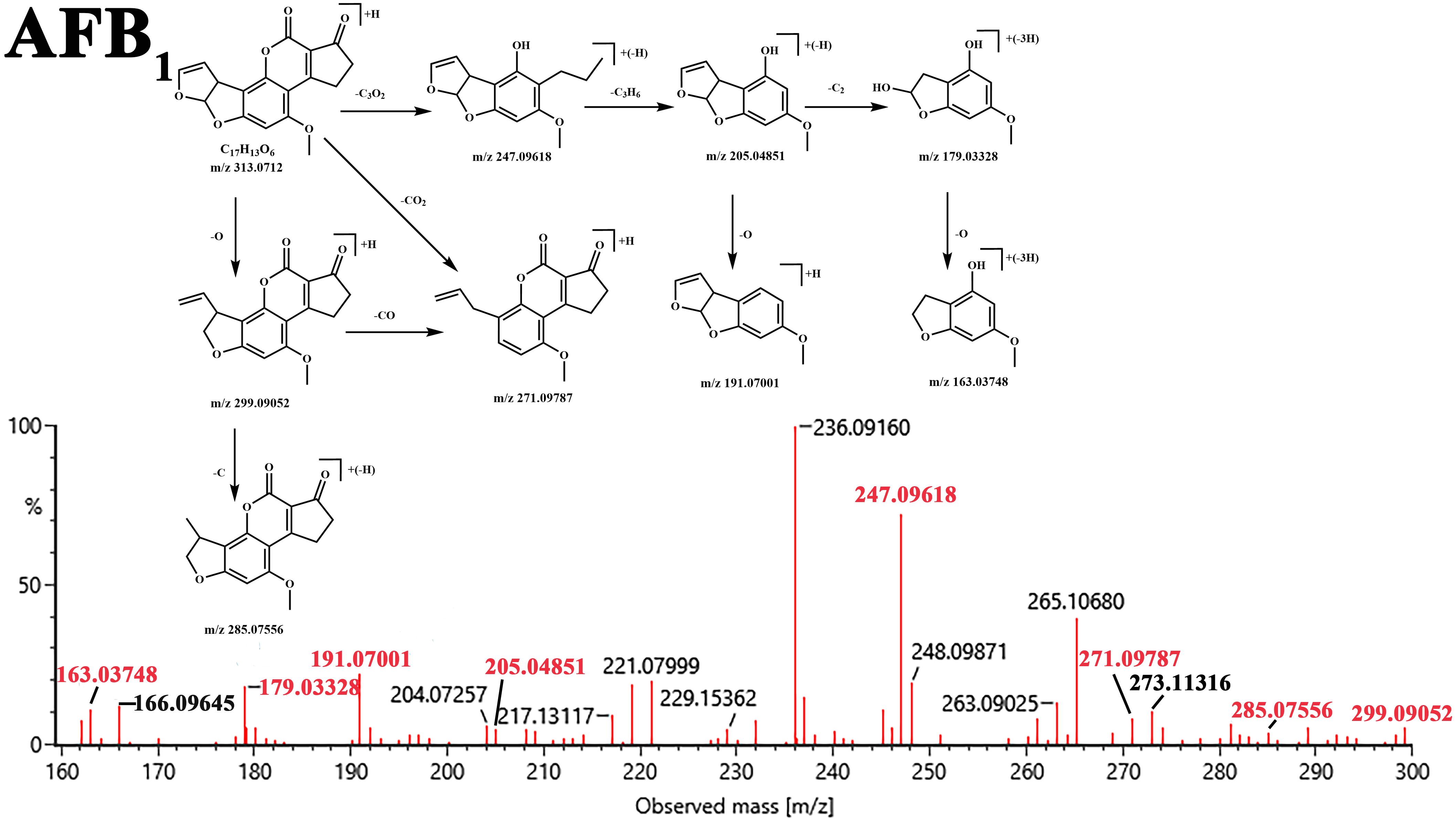 | AFB1 | 4.665 | C17H13O6 | 313.0712 | 313.0754 | 4.2 | 13.4 | 11.5 |