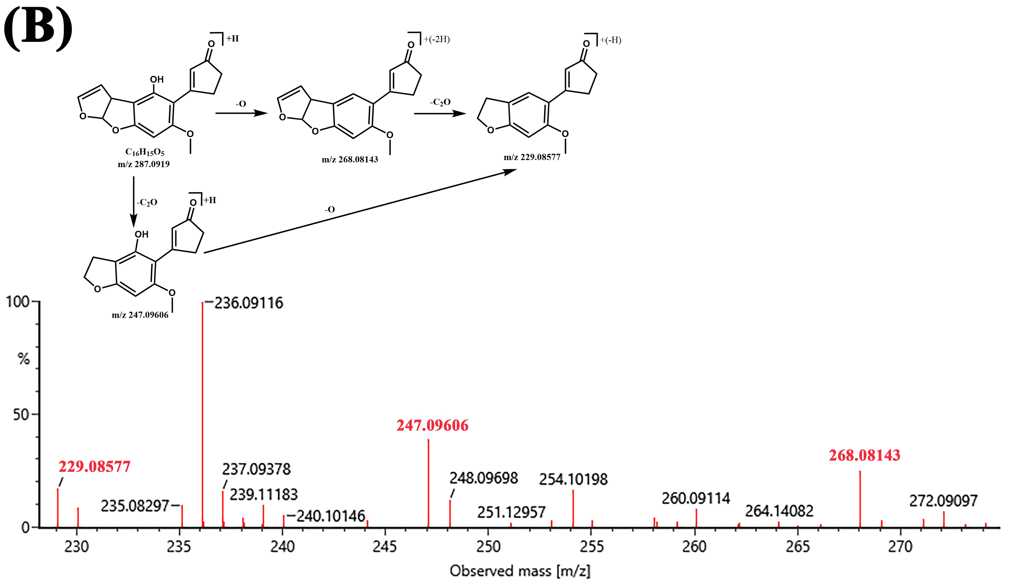 | B | 4.330 | C16H15O5 | 287.0919 | 287.0937 | 1.8 | 6.3 | 9.5 |