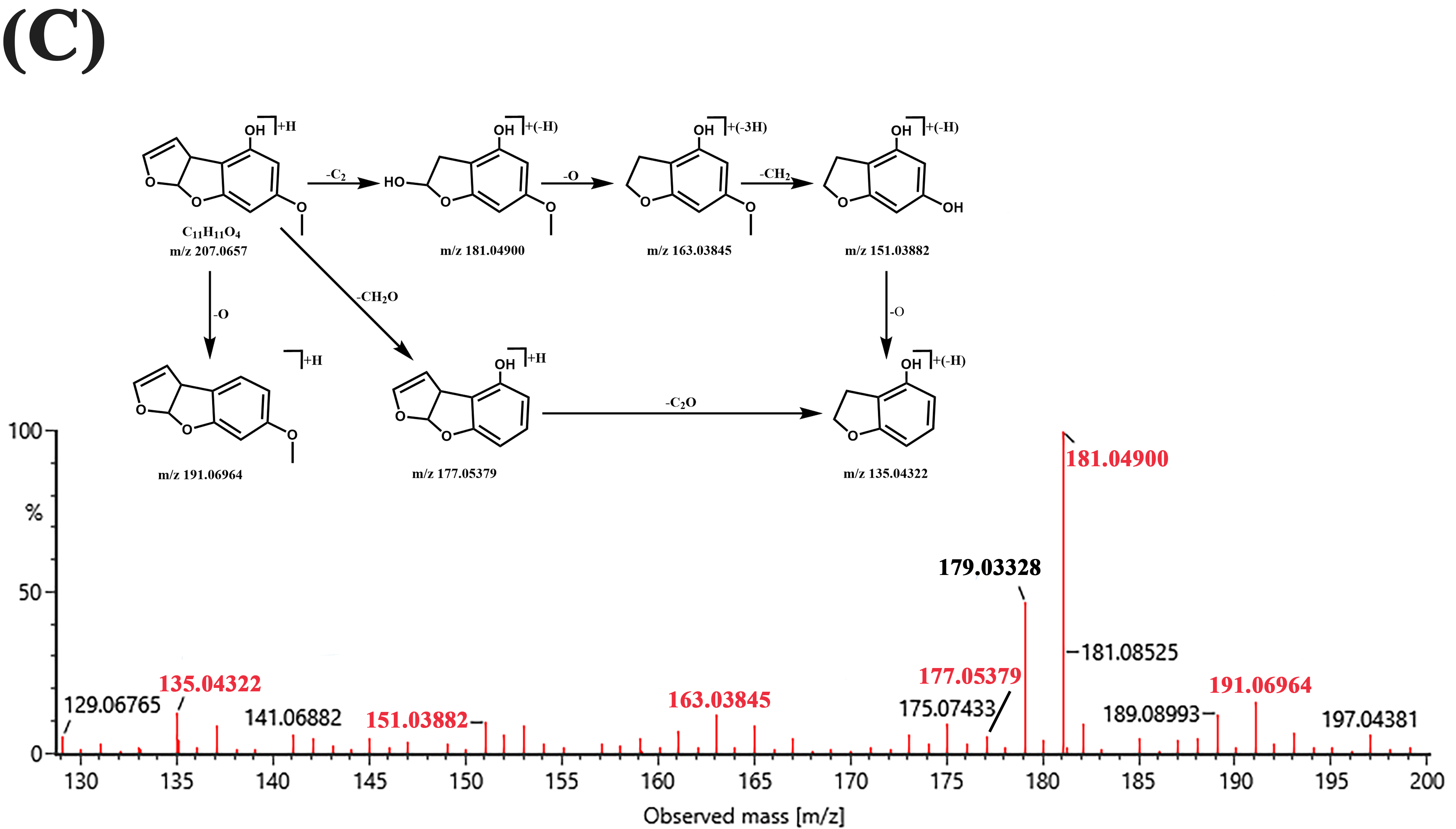 | C | 7.679 | C11H11O4 | 207.0657 | 207.0706 | 4.9 | 23.7 | 6.5 |