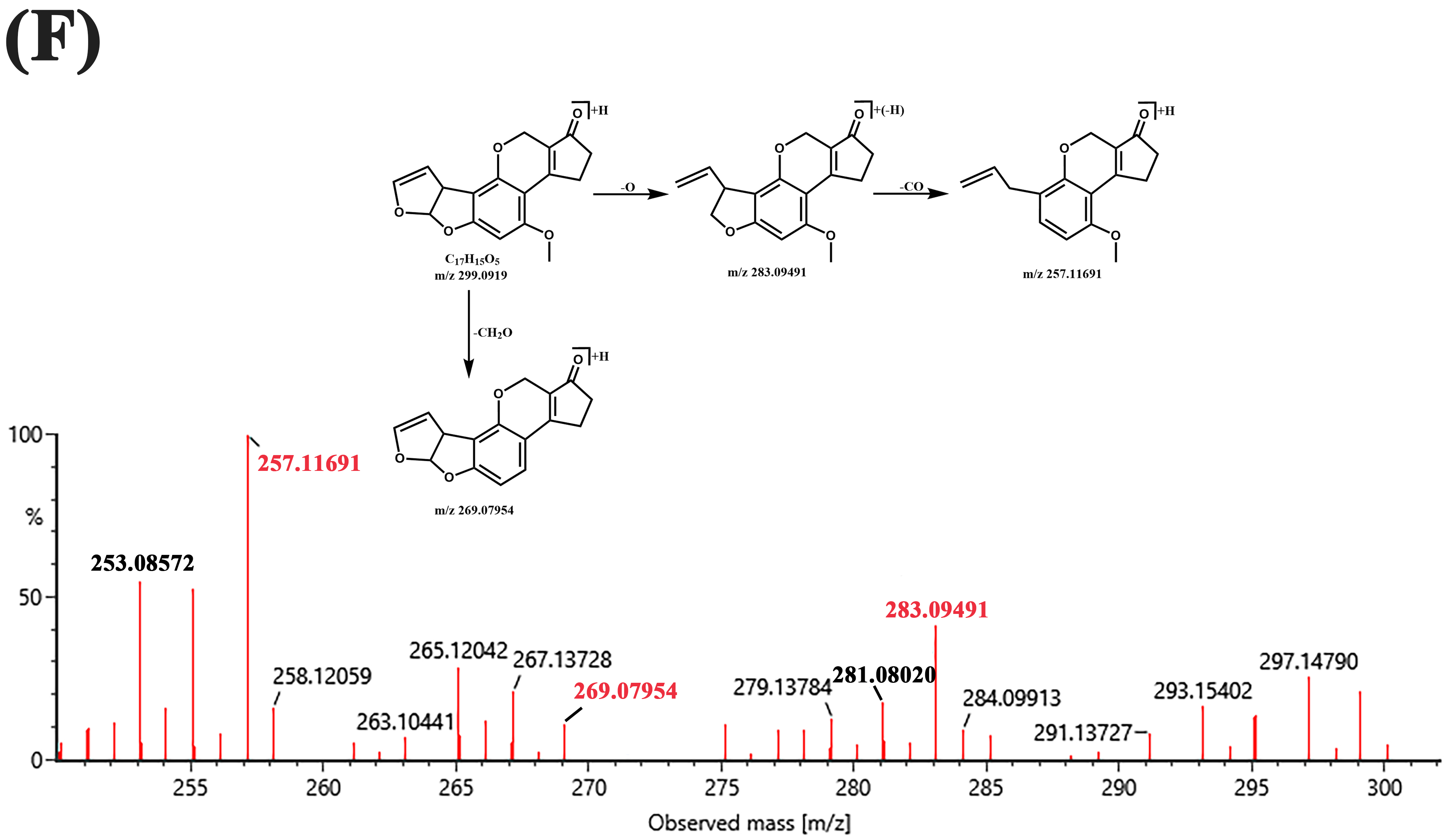 | F | 6.585 | C17H15O5 | 299.0919 | 299.0936 | 1.7 | 5.7 | 10.5 |