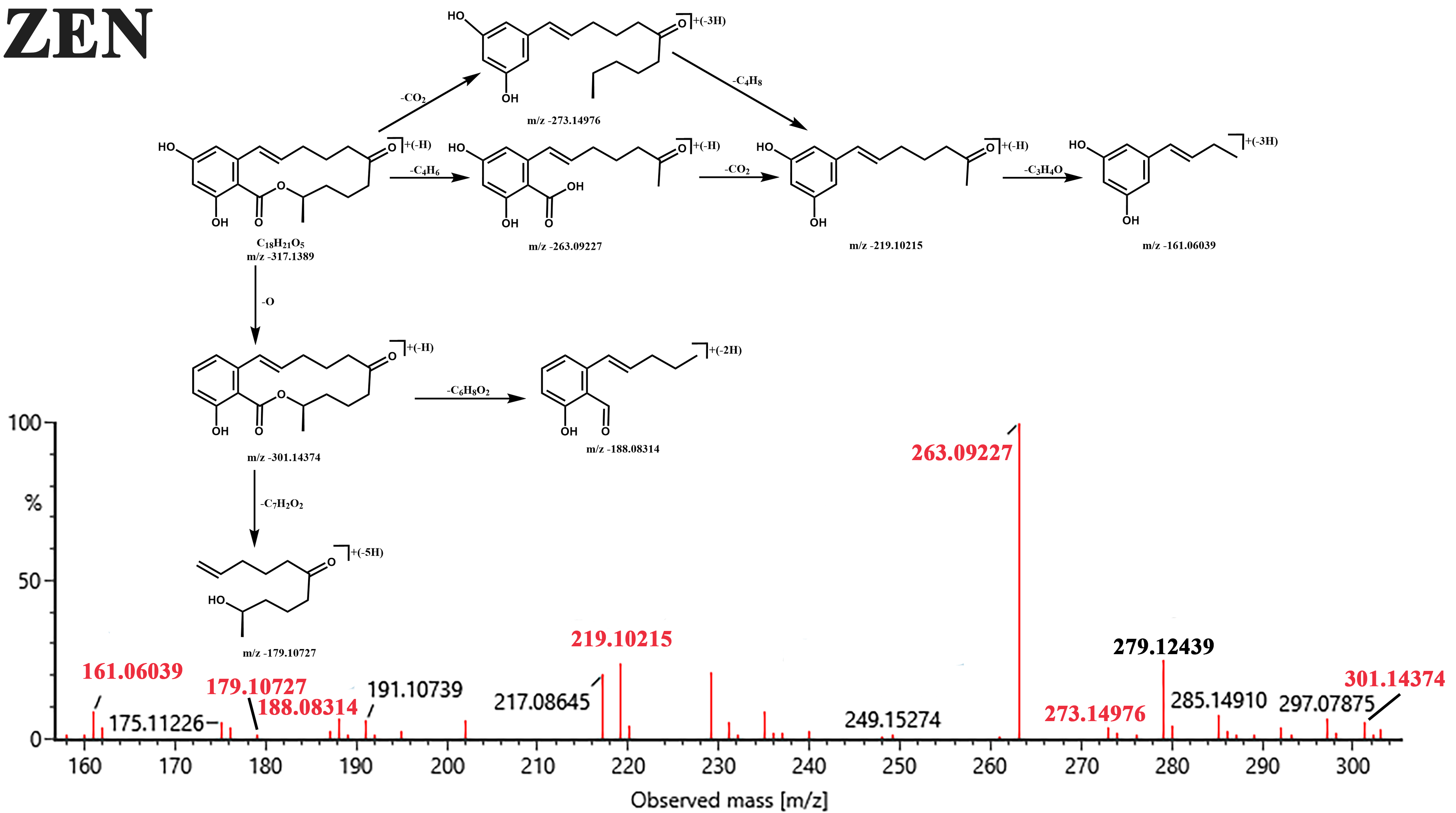 | ZEN | 6.298 | C18H21O5 | 317.1389 | 317.1396 | 0.7 | 2.2 | 8.5 |