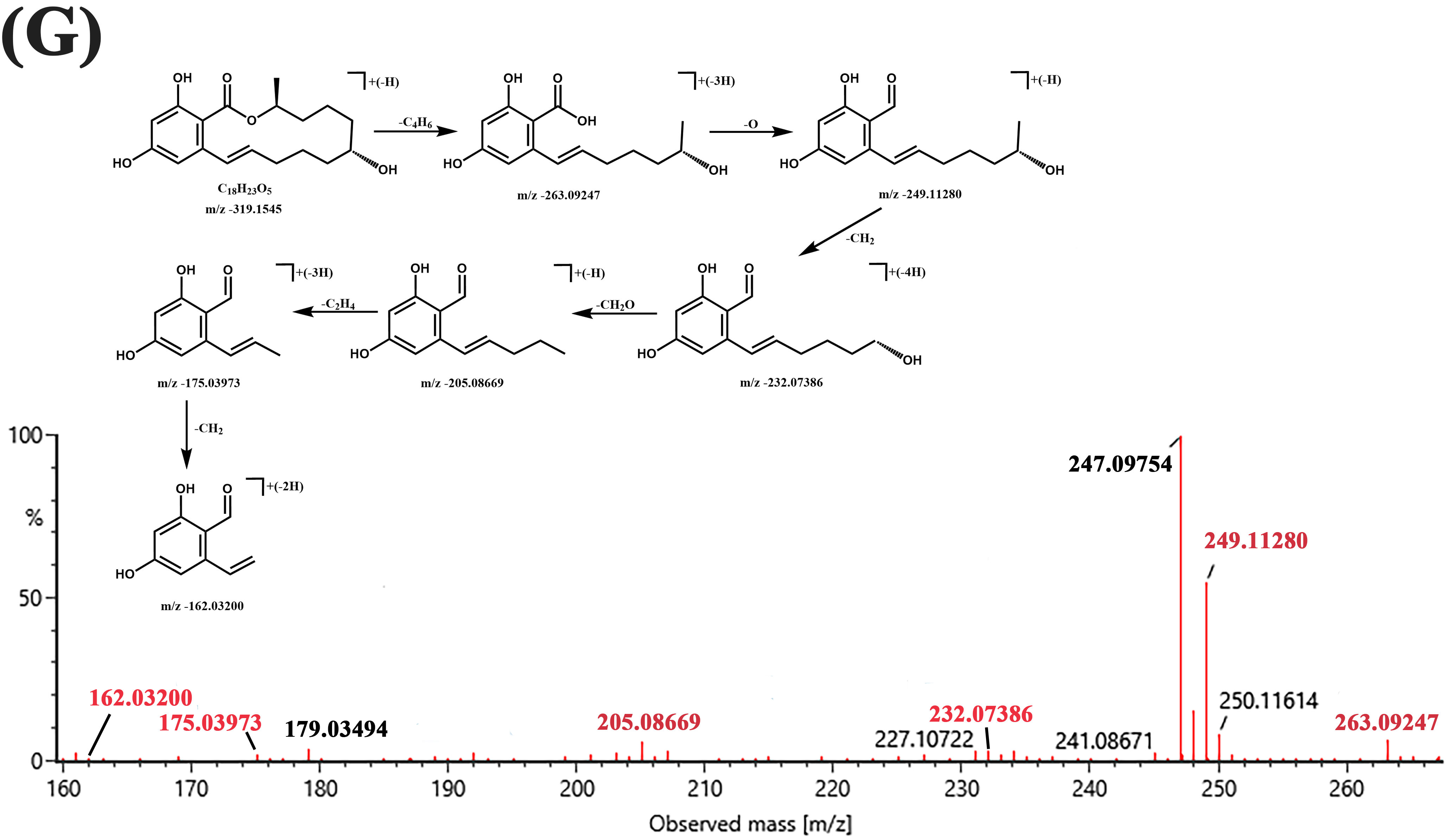 | G | 6.987 | C18H23O5 | 319.1545 | 319.1563 | 1.8 | 5.6 | 7.5 |
