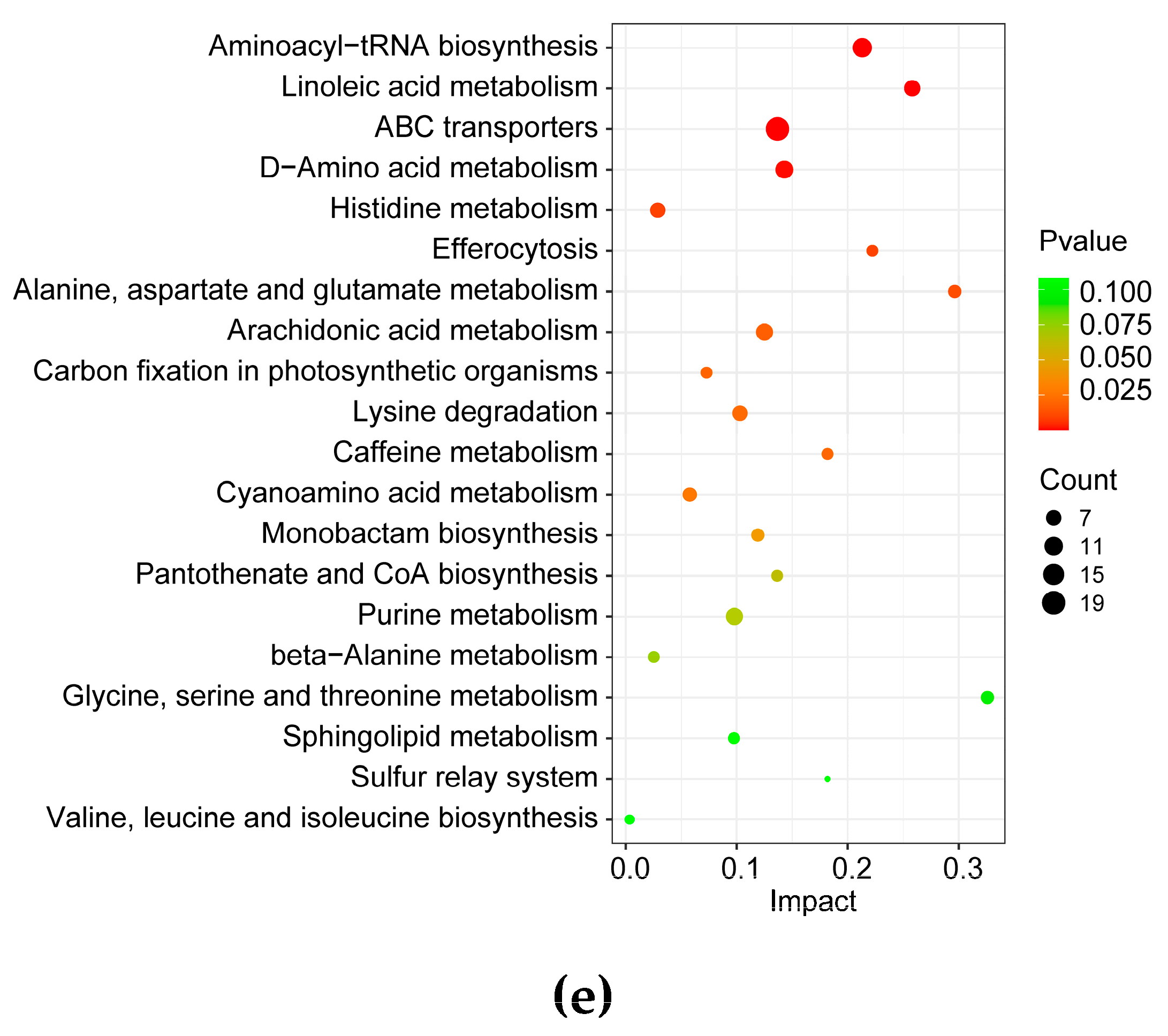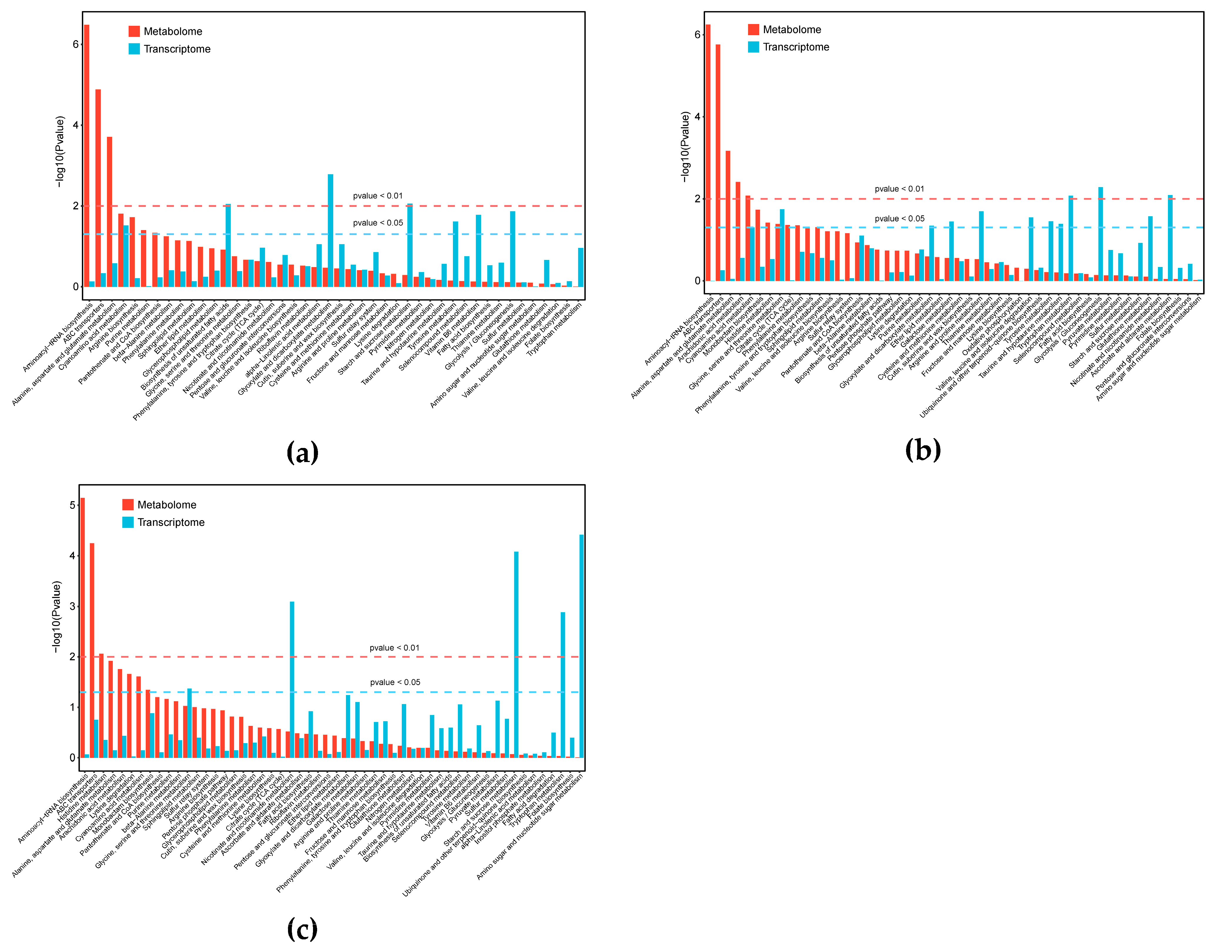 3.3. Integrated Analysis of Transcriptomics and Metabolomics