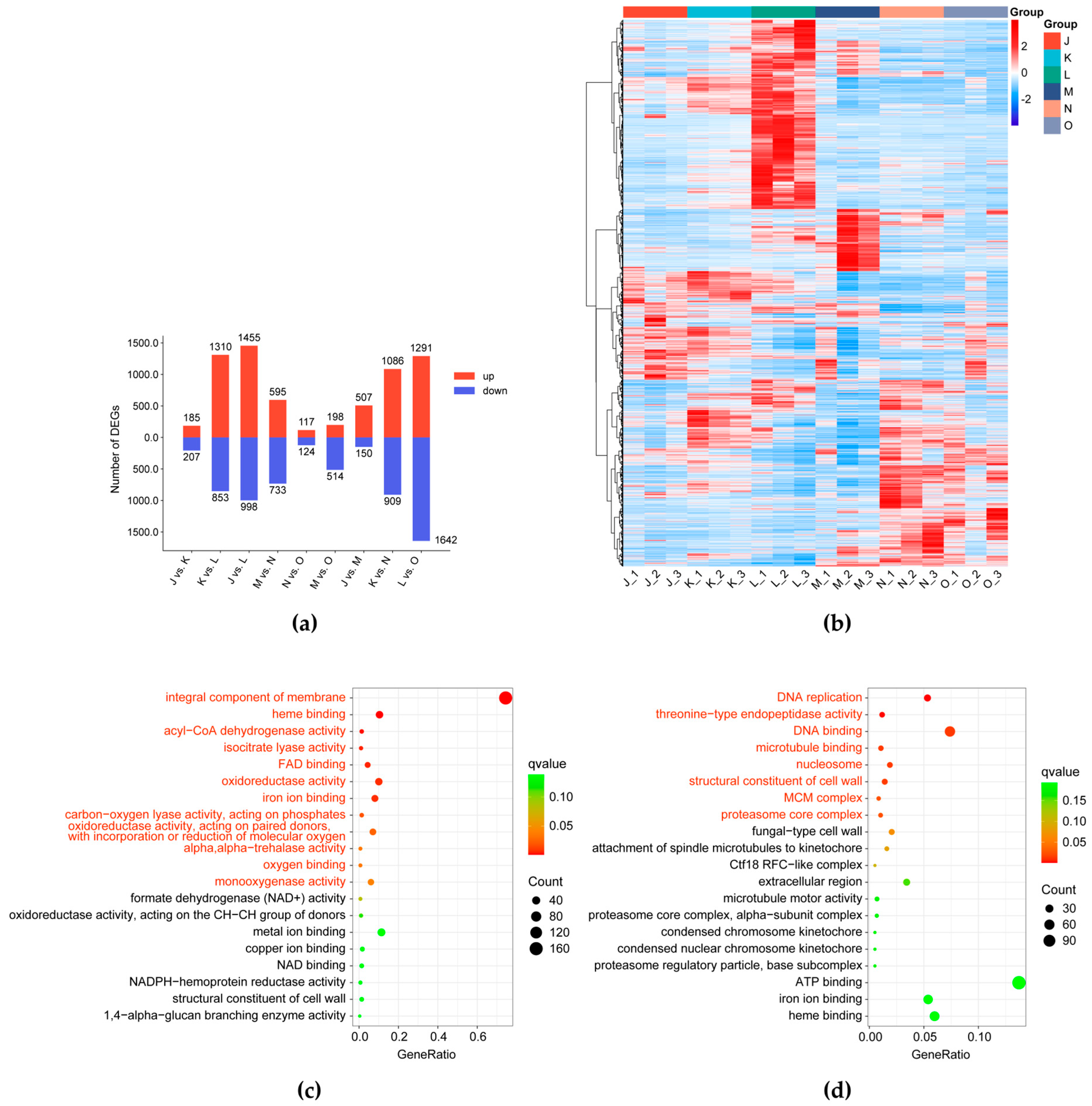 - Hao, H.; Zhang, J.; Wang, Q.; Huang, J.; Juan, J.; Kuai, B.; Feng, Z.; Chen, H. Transcriptome and differentially expressed gene profiles in mycelium, primordium and fruiting body development in Stropharia rugosoannulata. Genes 2022, 13, 1080. [Google Scholar] [CrossRef]