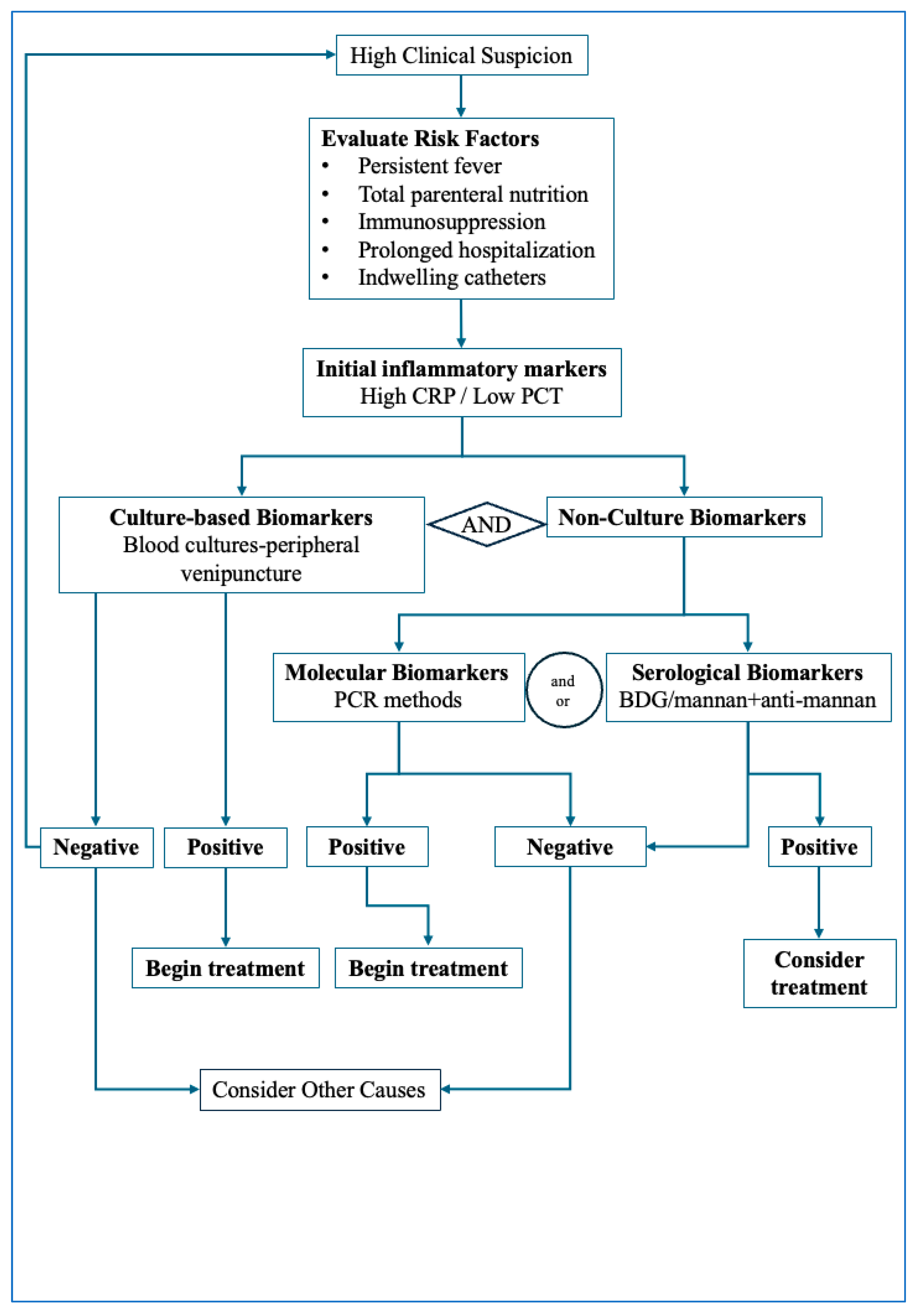 Overall, the evidence suggests that no single assay is sufficient for reliable early diagnosis. A combined approach integrating clinical assessment with culture-based and non-culture-based biomarkers offers the greatest diagnostic utility and supports more timely therapeutic decisions. Building on these findings, the principal contribution of this review is the proposed clinician-oriented diagnostic algorithm, which synthesizes current evidence into a practical framework for real-world evaluation of suspected invasive candidiasis. Its stepwise structure aims to support earlier suspicion, guide rational biomarker use, and facilitate more consistent diagnostic pathways across diverse clinical settings.