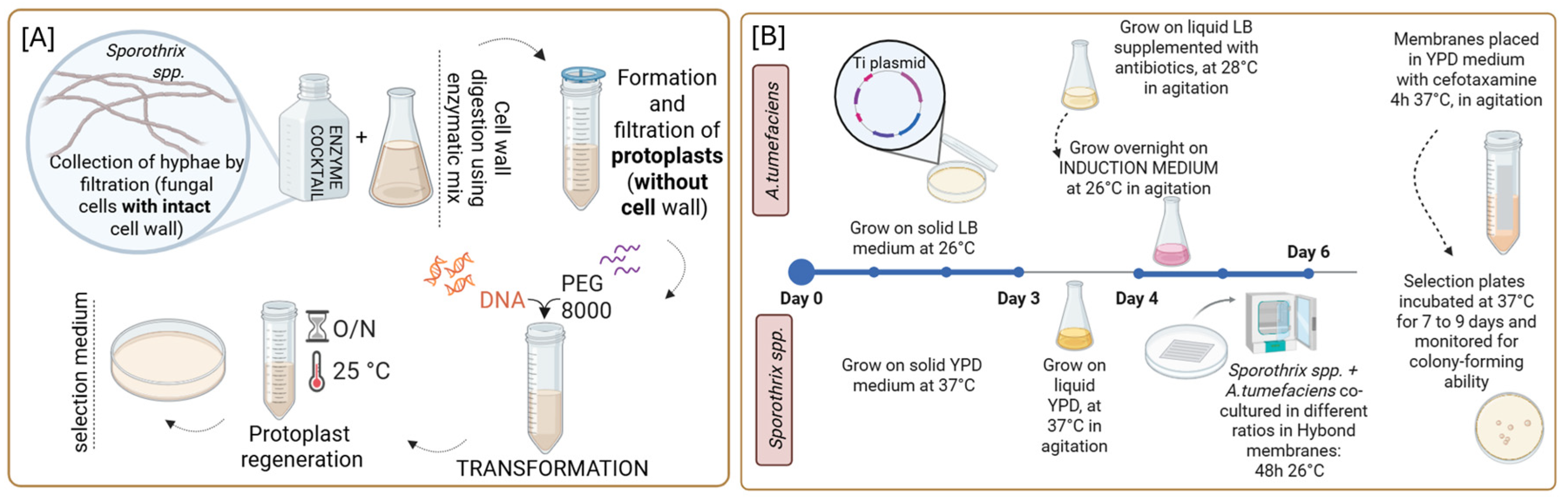 Sporothrix species in Sabouraud dextrose broth at 25 °C to obtain actively growing mycelia. The protoplasts are generated by enzymatic digestion using Yatalase and Lysing Enzymes from