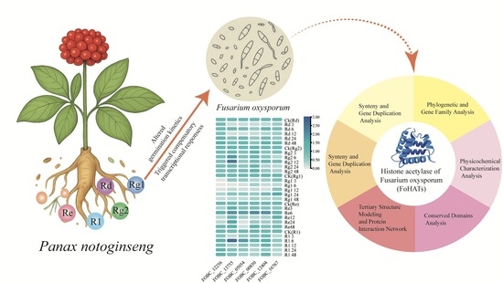 Genome-Wide Identification of Histone Acetyltransferases in Fusarium oxysporum and Their Response to Panax notoginseng Notoginsenosides