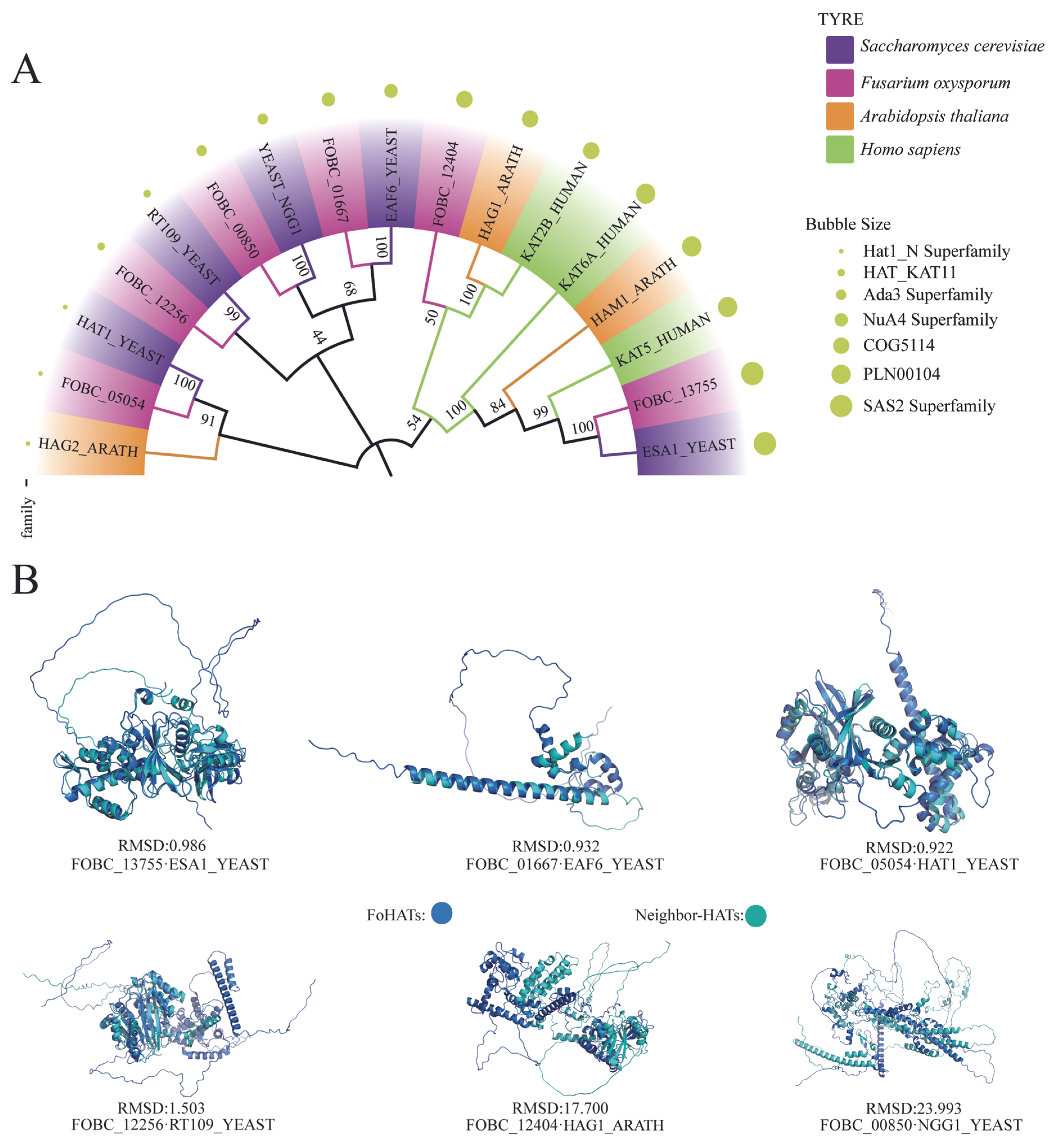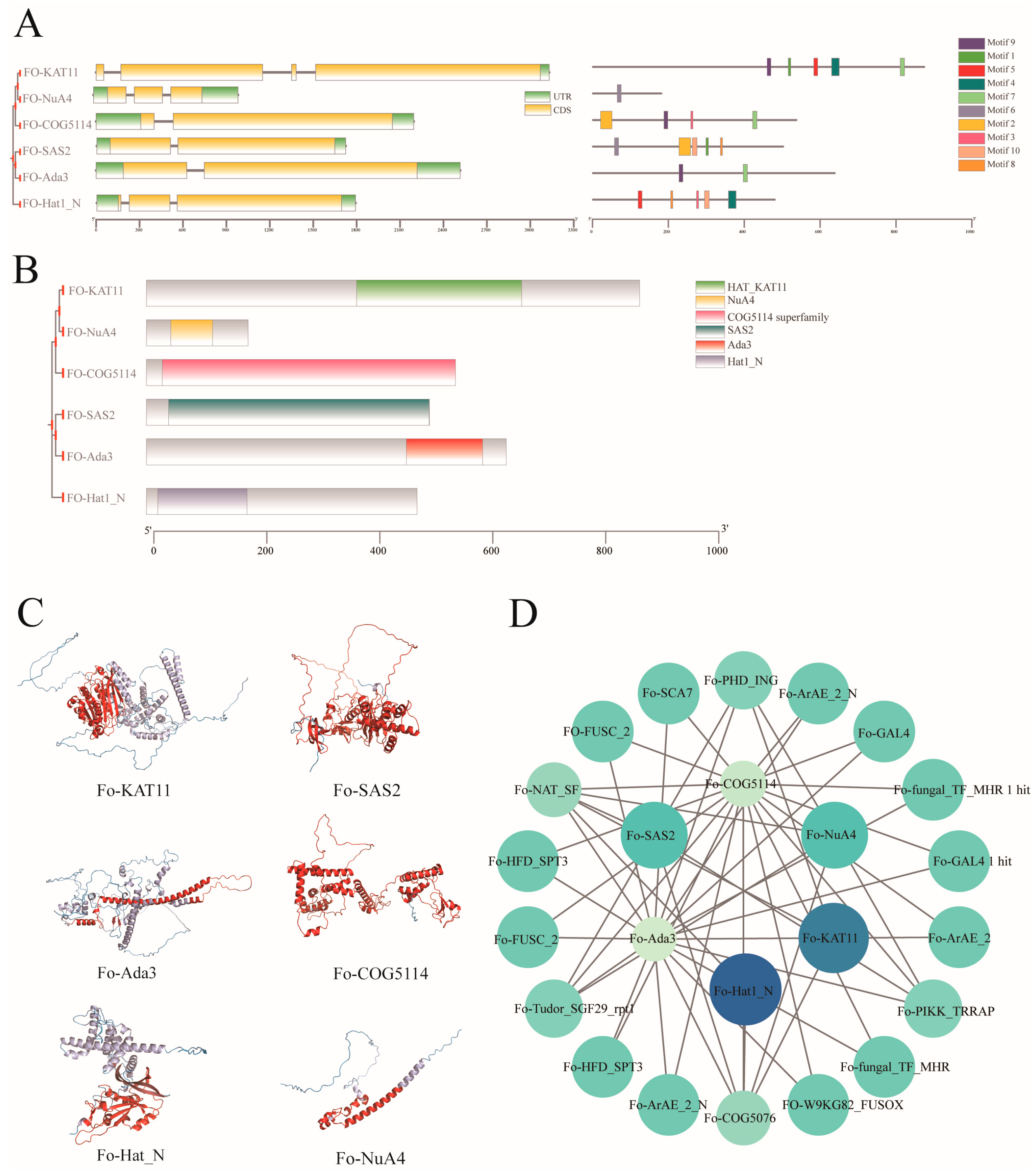 3.1. Phylogenetic Analysis of Fusarium oxysporum Histone Acetyltransferases