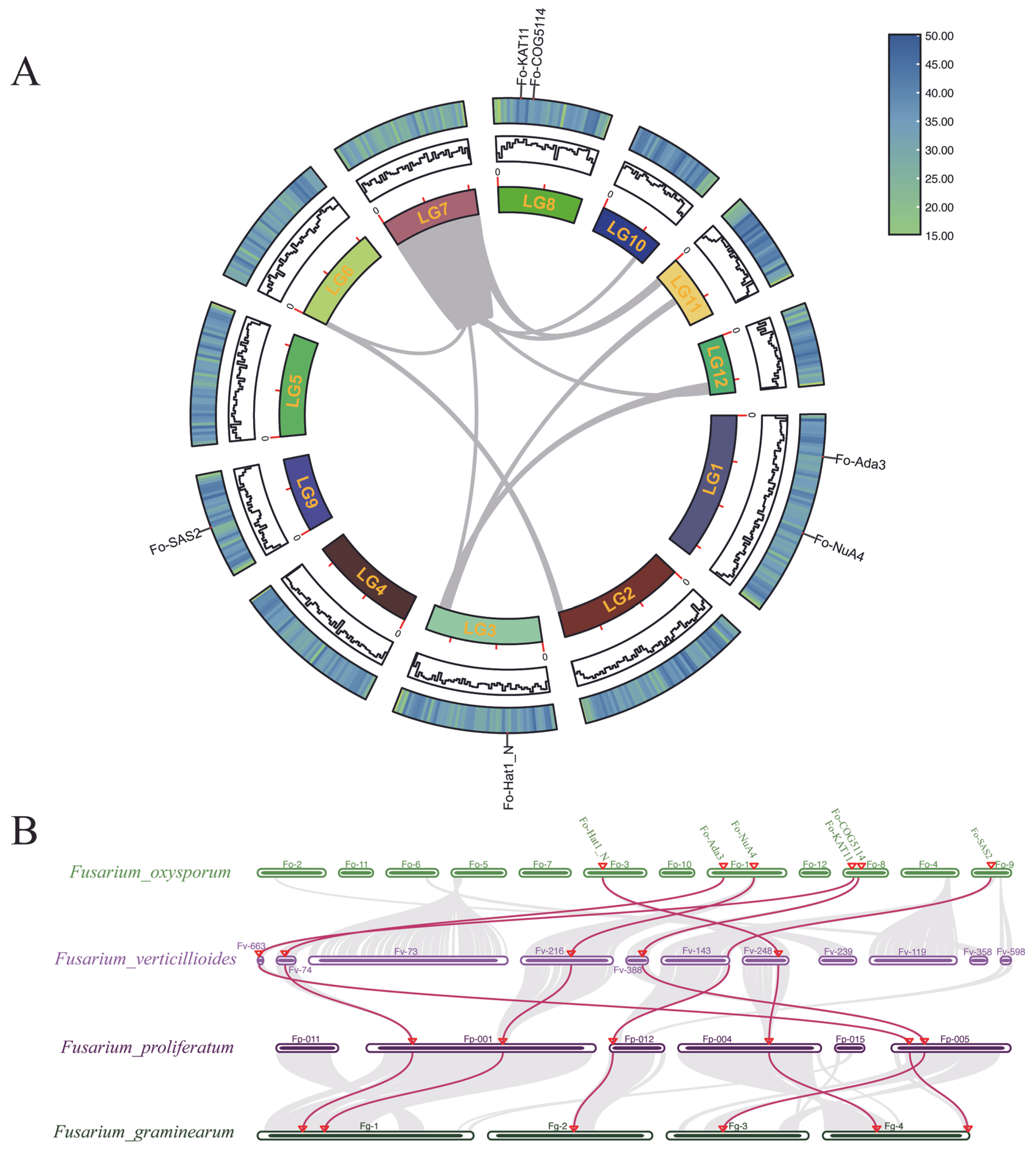 3.3. Comparative Synteny Analysis of F. oxysporum HAT Genes