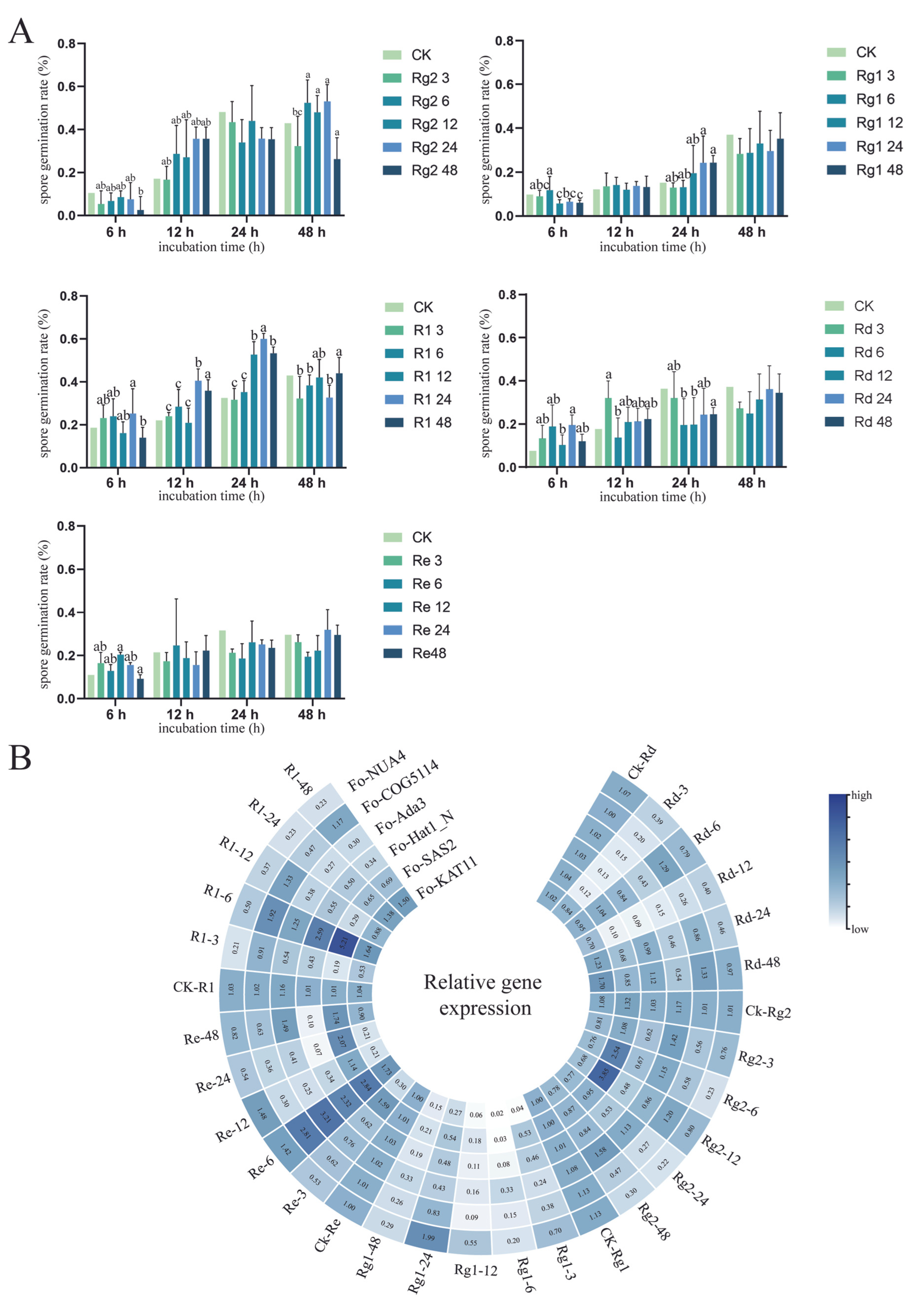 2.9. F. oxysporum Spore Response Assays to P. notoginseng Root-Exudated Notoinsenosides