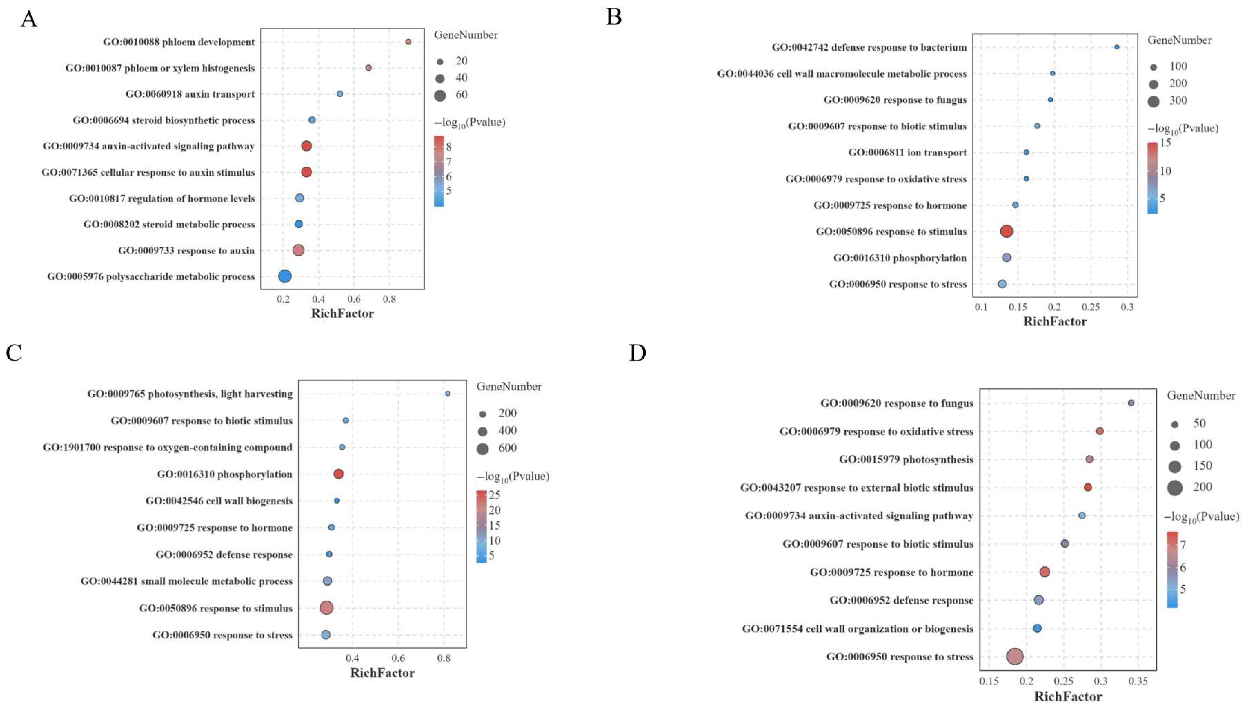 3.4. GO and KEGG Enrichment Analysis of DEGs