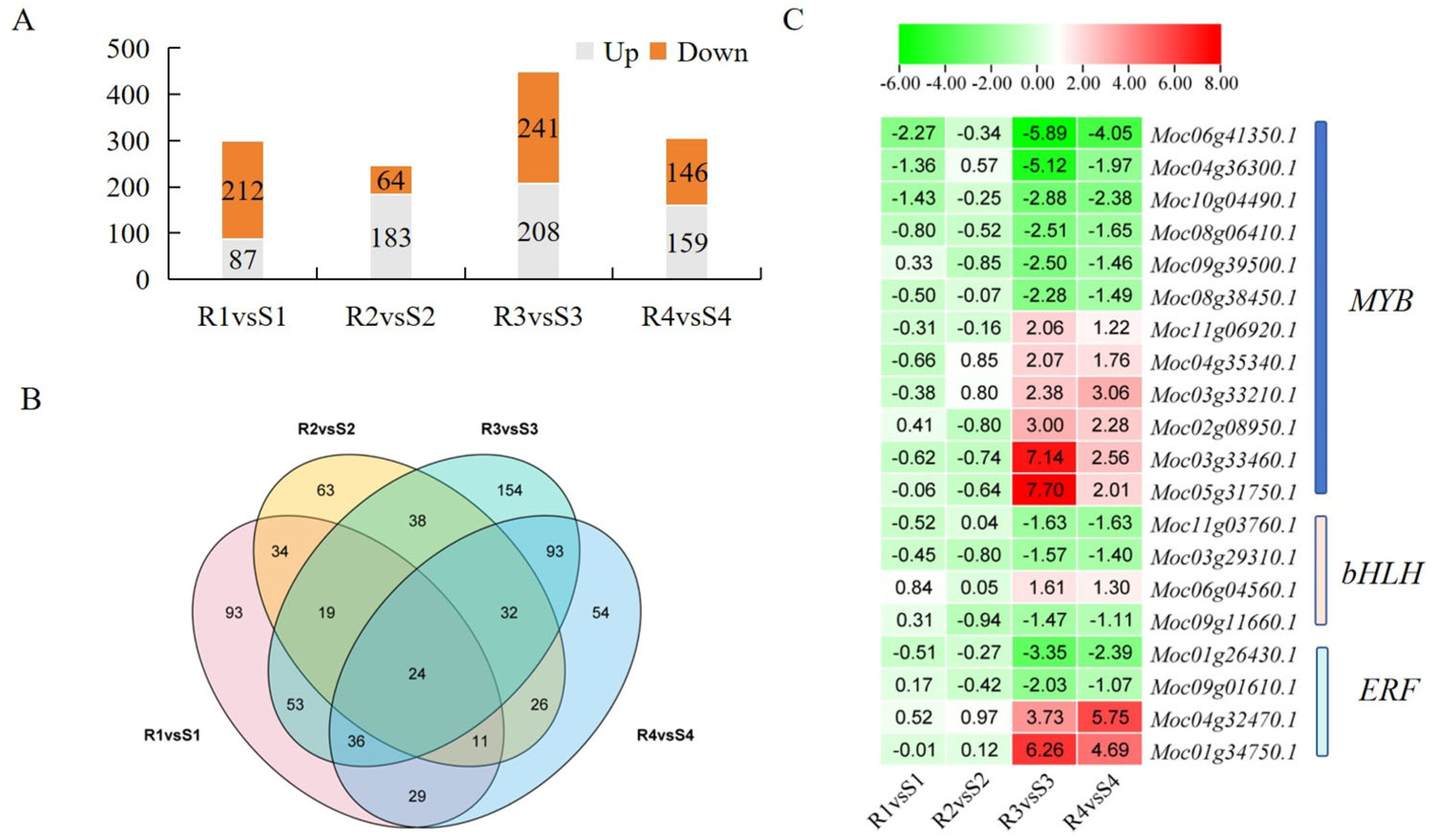 3.5. TF Analysis Involved in Regulation of PM Resistance