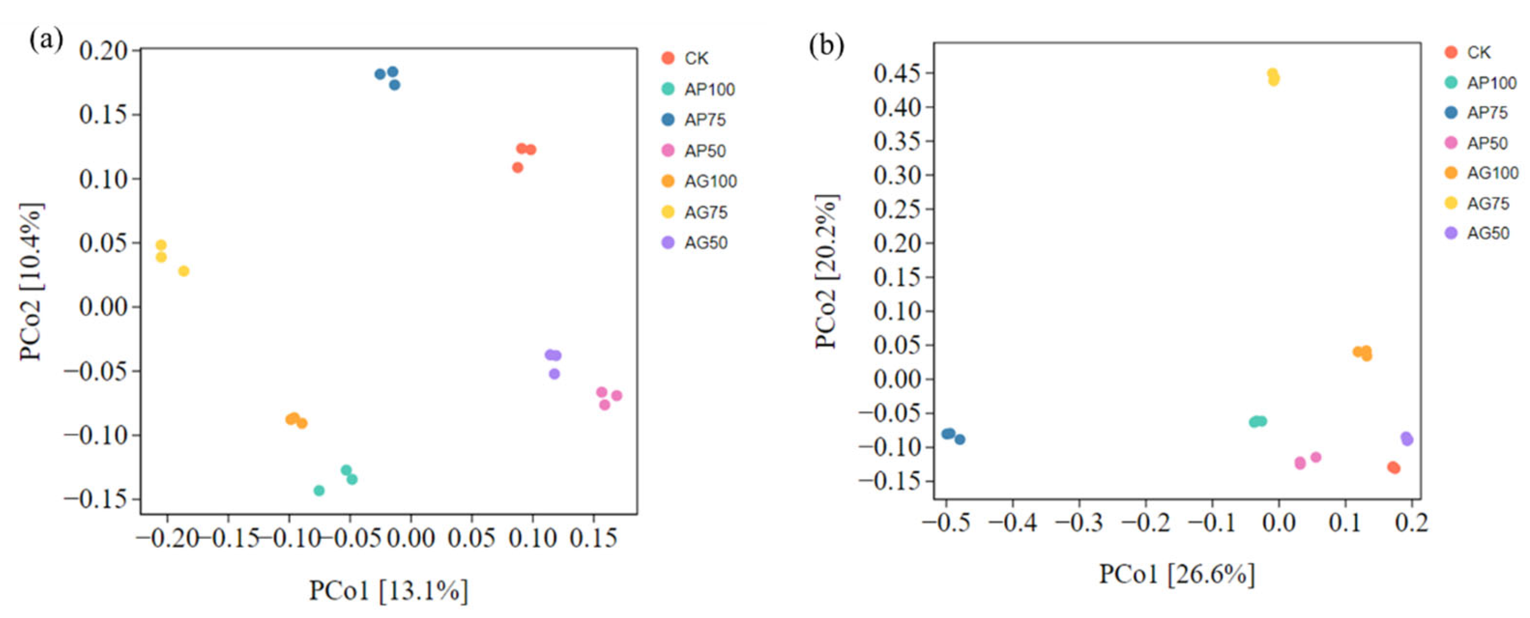 3.3. α-Diversity of Soil Bacterial and Fungal Communities Under Fertilization Treatments