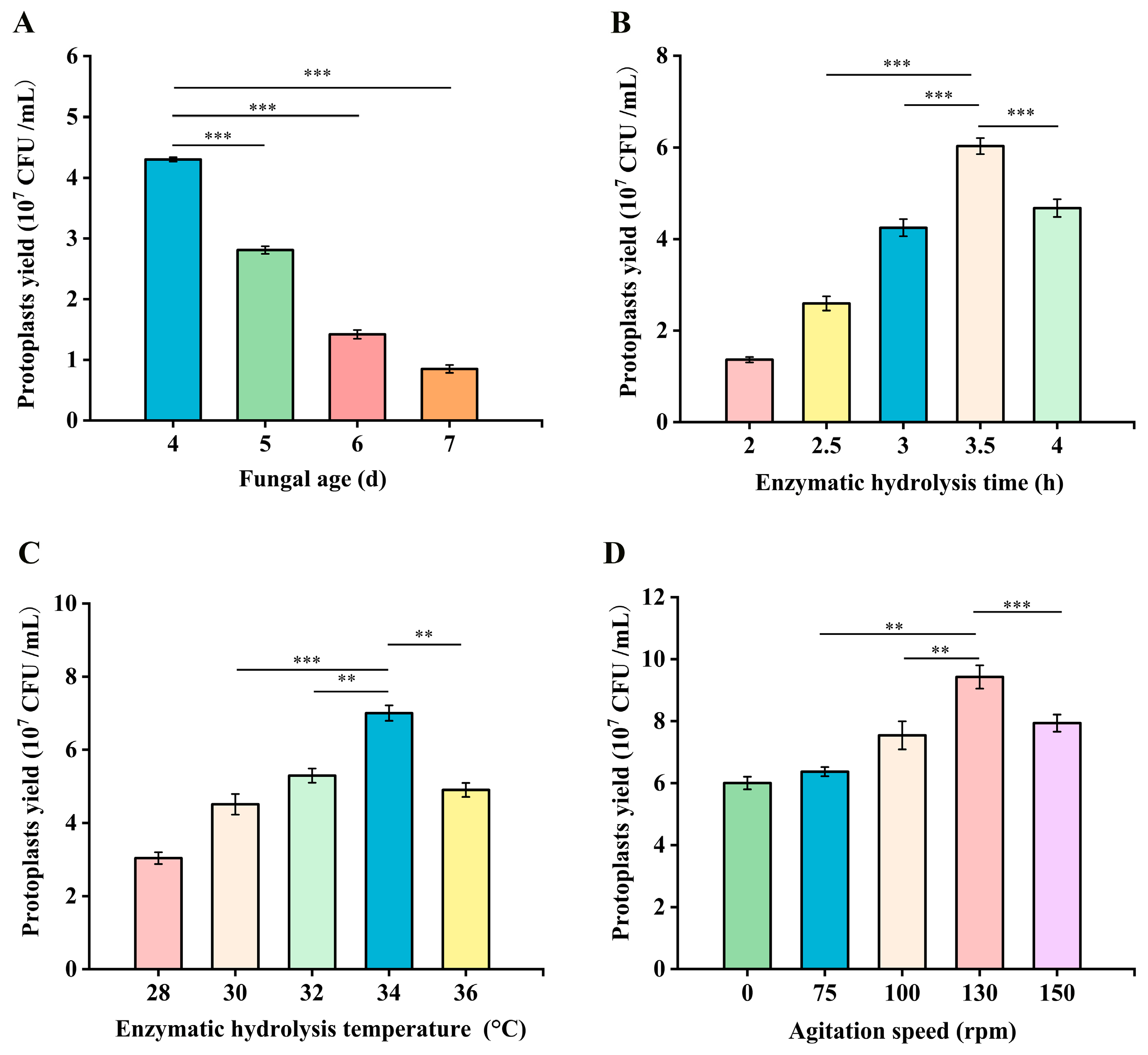 3.1.2. Effect of Fungal Age on Protoplast Preparation