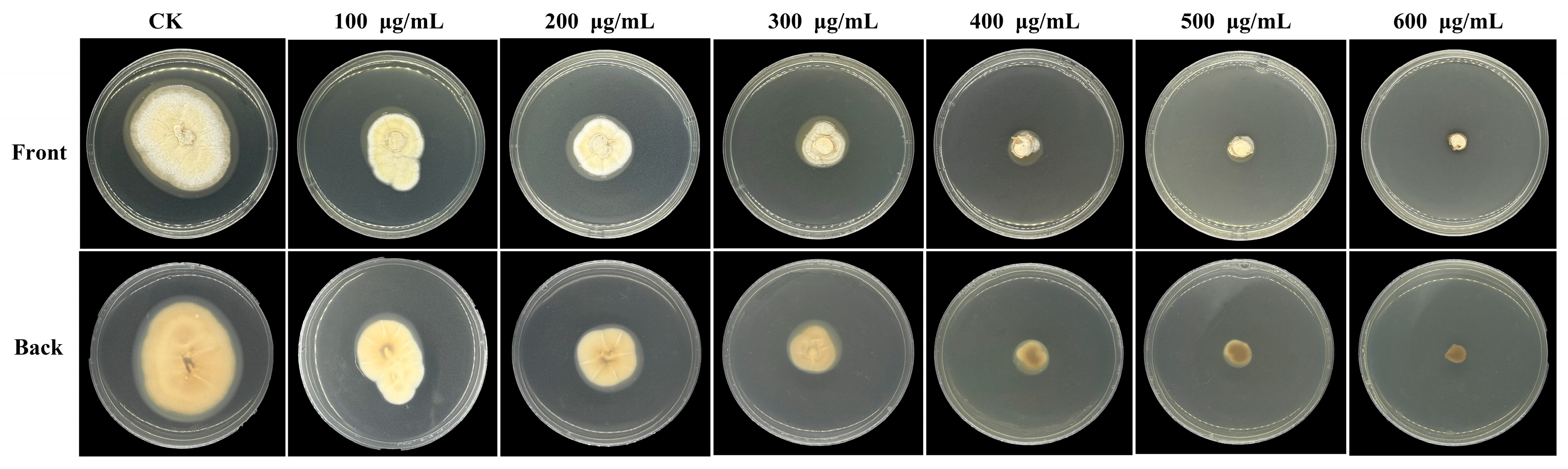 - Zhang, M.; Xiao, C.; Tan, Q.; Dong, L.; Liu, X.; Pu, J.; Zhang, H. The Involvement of the Laccase Gene Cglac13 in Mycelial Growth, Germ Tube Development, and the Pathogenicity of Colletotrichum gloeosporioides from Mangoes. J. Fungi 2023, 9, 503. [Google Scholar] [CrossRef]