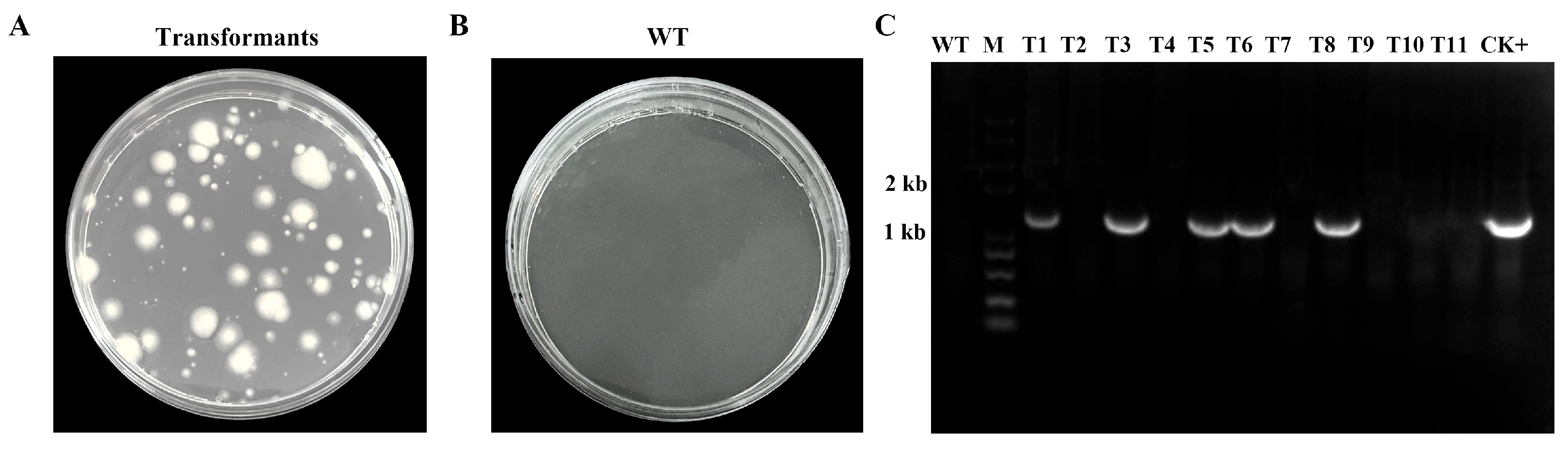 2.6. The PEG-Mediated Transformation of O. xuefengensis Protoplast