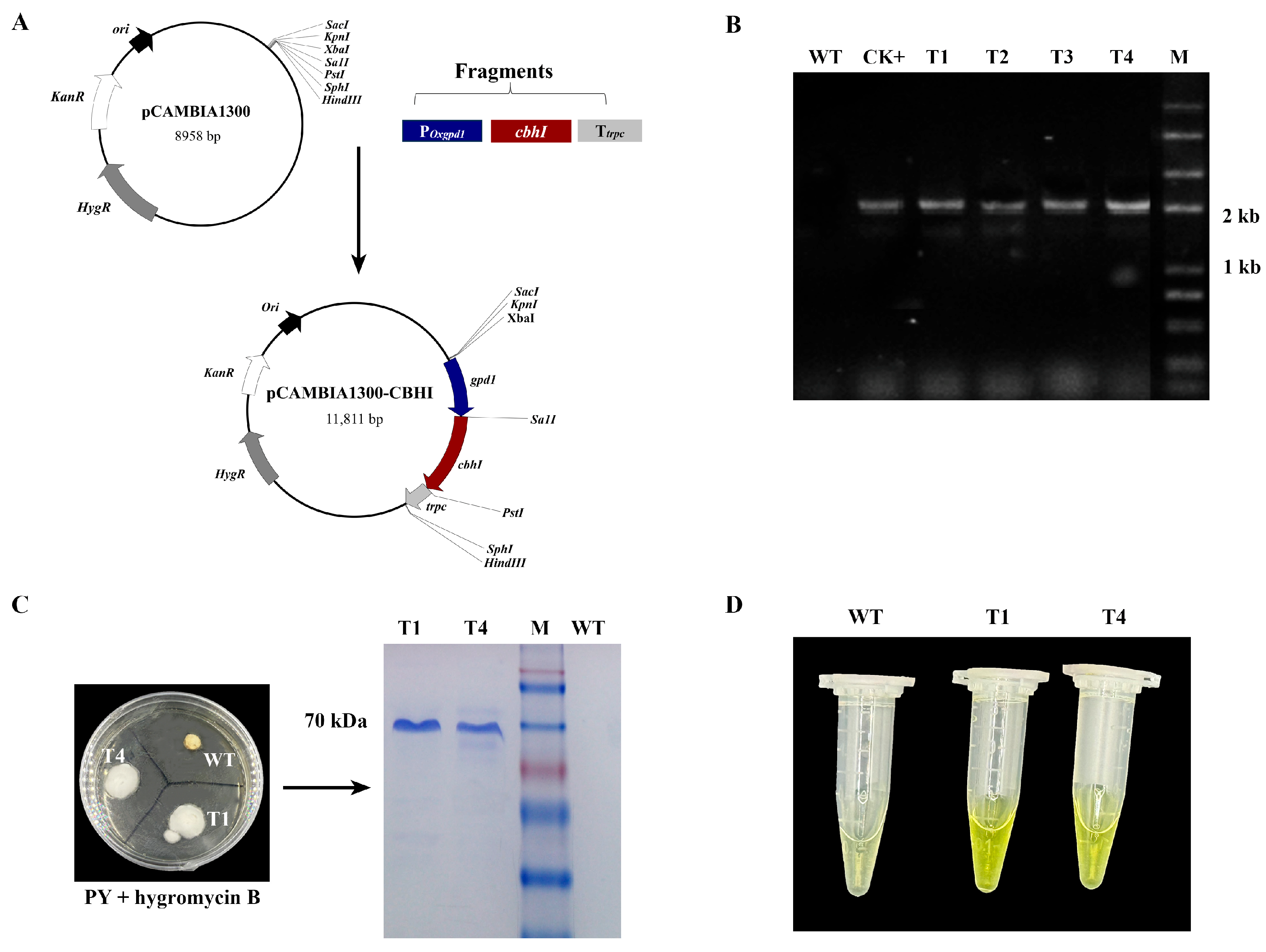 3.6. Elucidation of PEG-Mediated Protoplast Transformation for Heterologous CBHI Expression