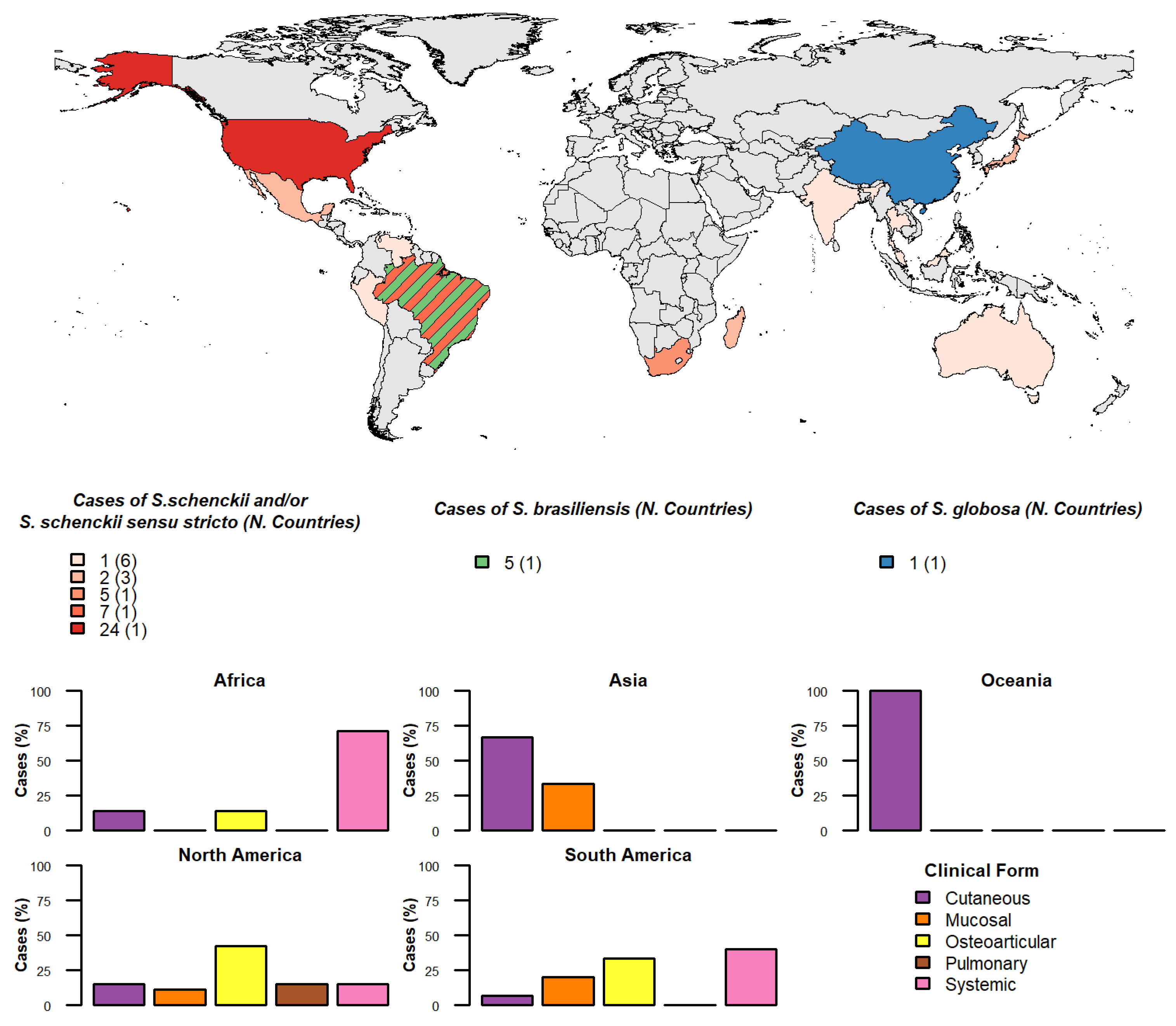 | Winter & Pearson [48], 1972 | North America/USA | 51 | M | Yes | Classic | S. schenckii | Saprophytic | Osteoarticular | Polyenes | Clinical improvent |