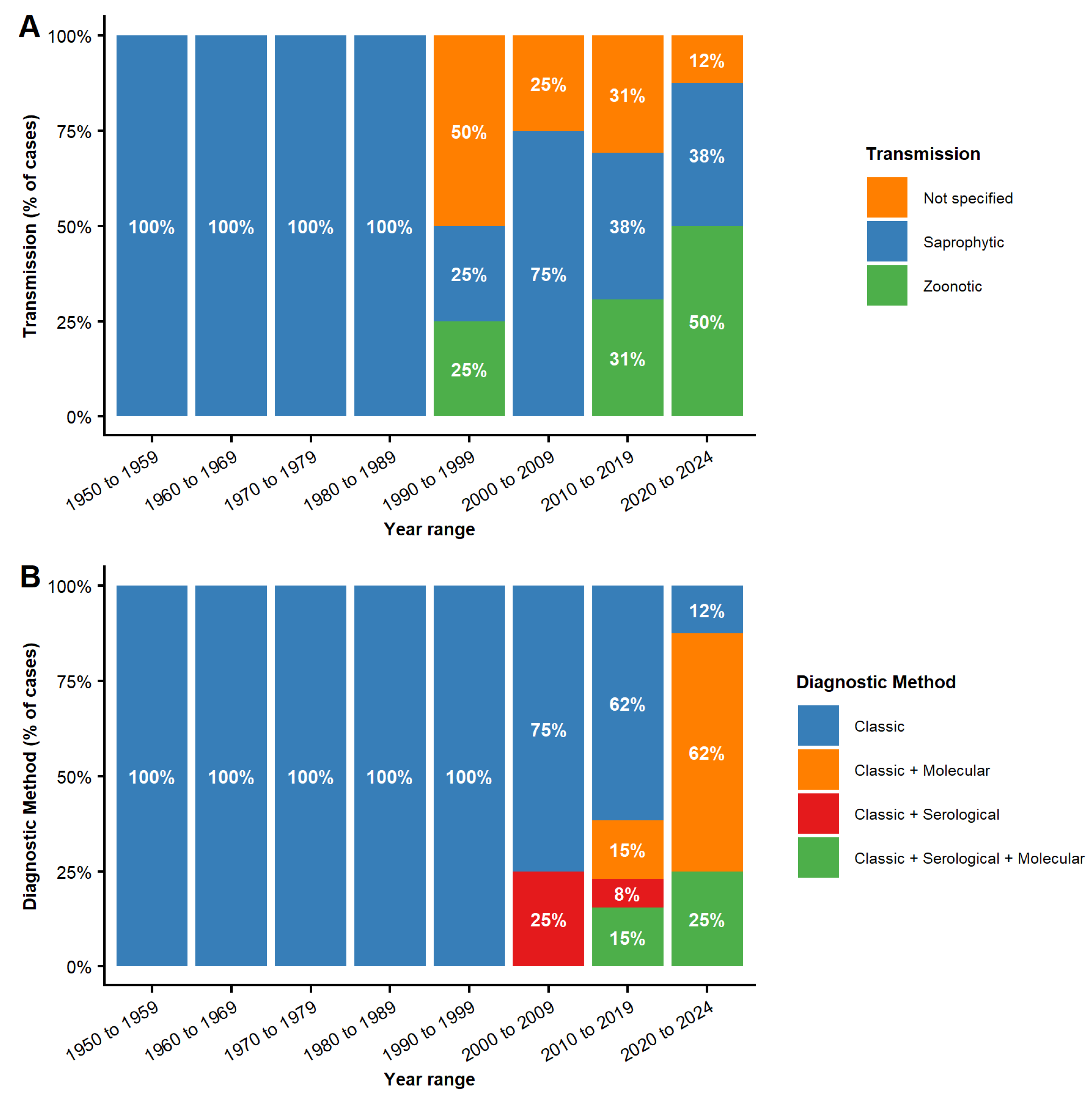 - Cheng, S.; Zheng, S.; Zhong, M.; Gyawali, K.R.; Pan, W.; Xu, M.; Huang, H.; Huang, X. Current situation of sporotrichosis in China. Future Microbiol. 2024, 19, 1097–1106. [Google Scholar] [CrossRef] [PubMed]