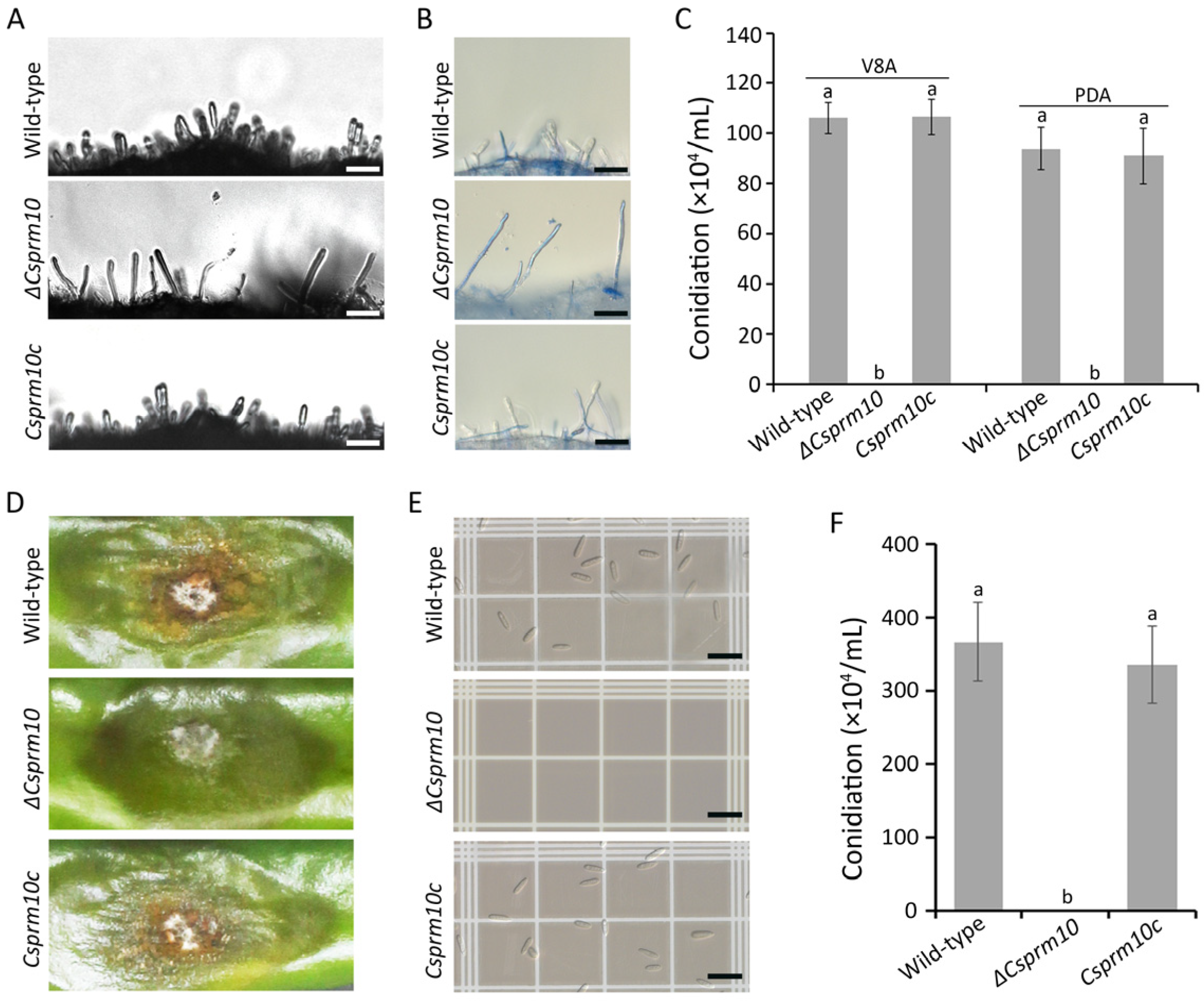 3.6. CsPRM10 Is Dispensable for Disease Development