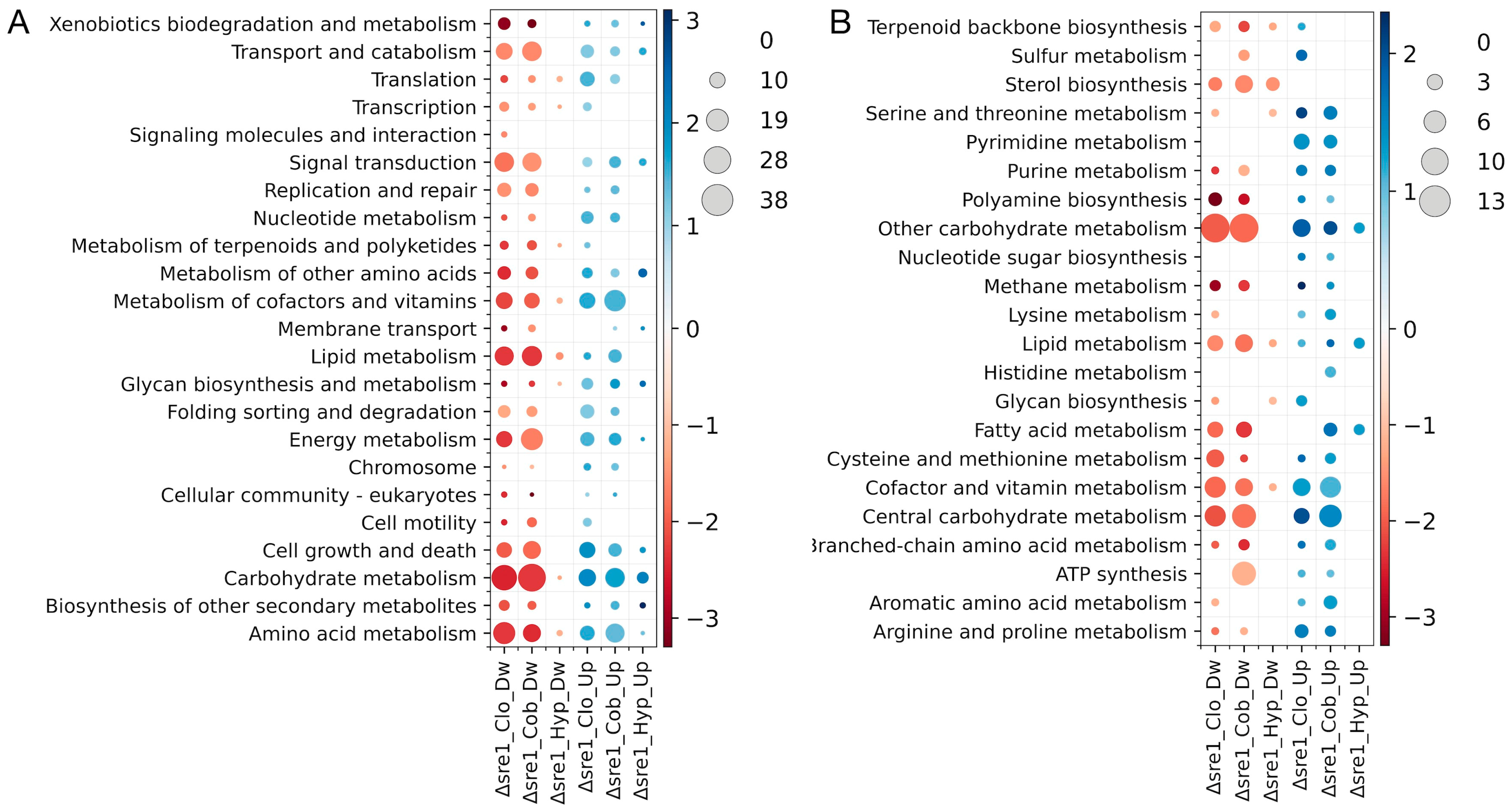 | Δsre1 vs. WT (Hyp) | Δsre1 vs. WT (Cob) | Δsre1 vs. WT (Clo) | |||||