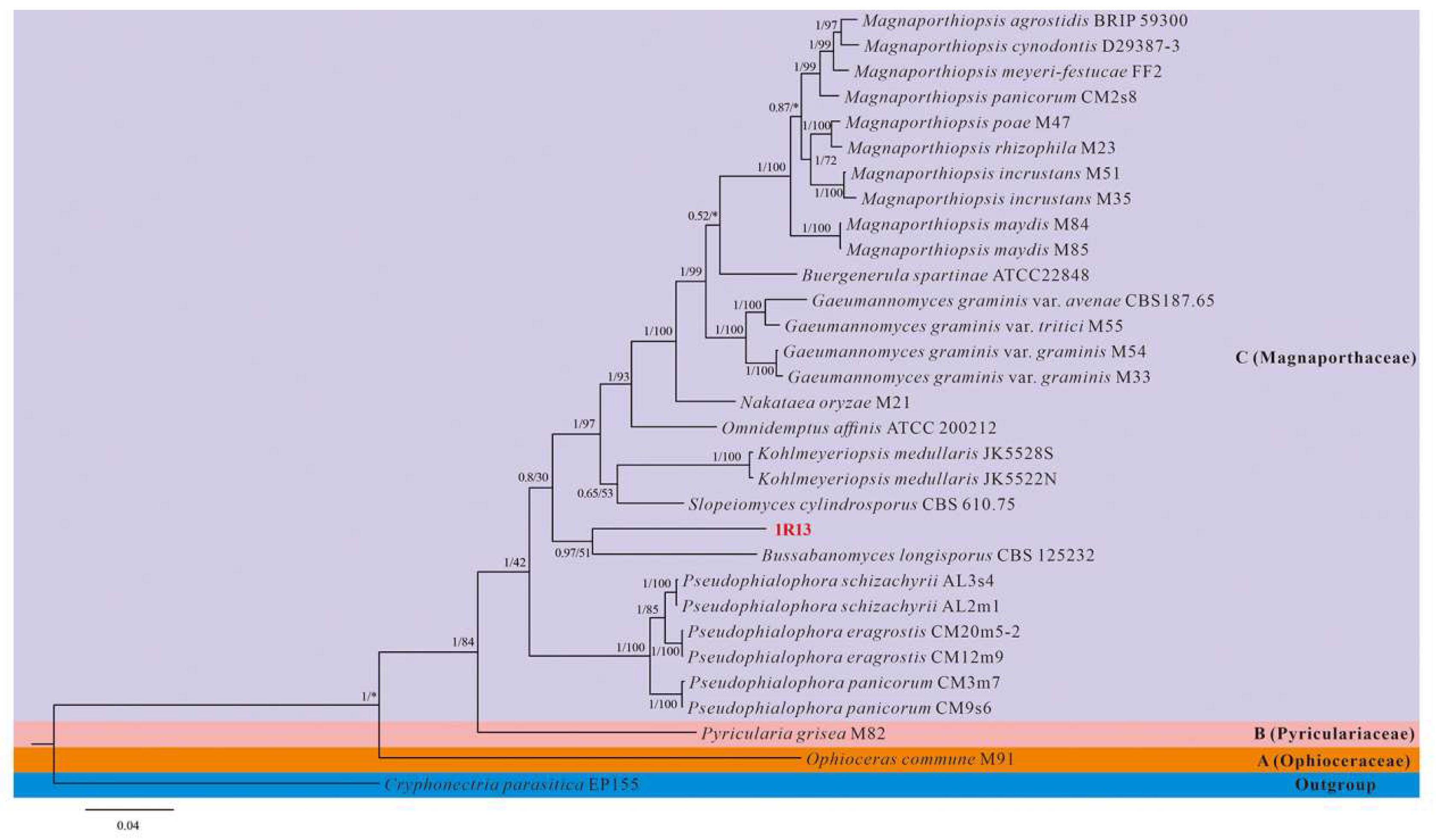 | Magnaporthiopsis rhizophila | M23 | JF414858 | JF414834 | JF414883 | JF710432 | JF710408 |