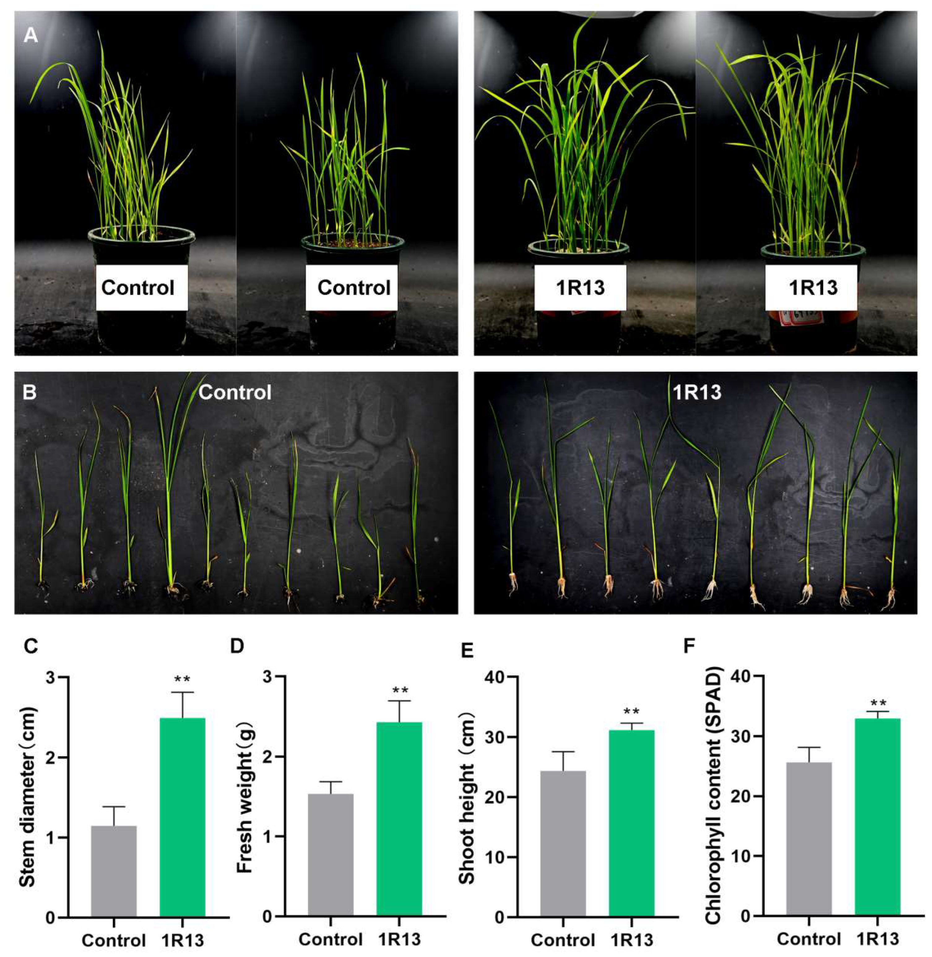 3.4. Bussabanomyces oryzae Promote the Growth of Rice
