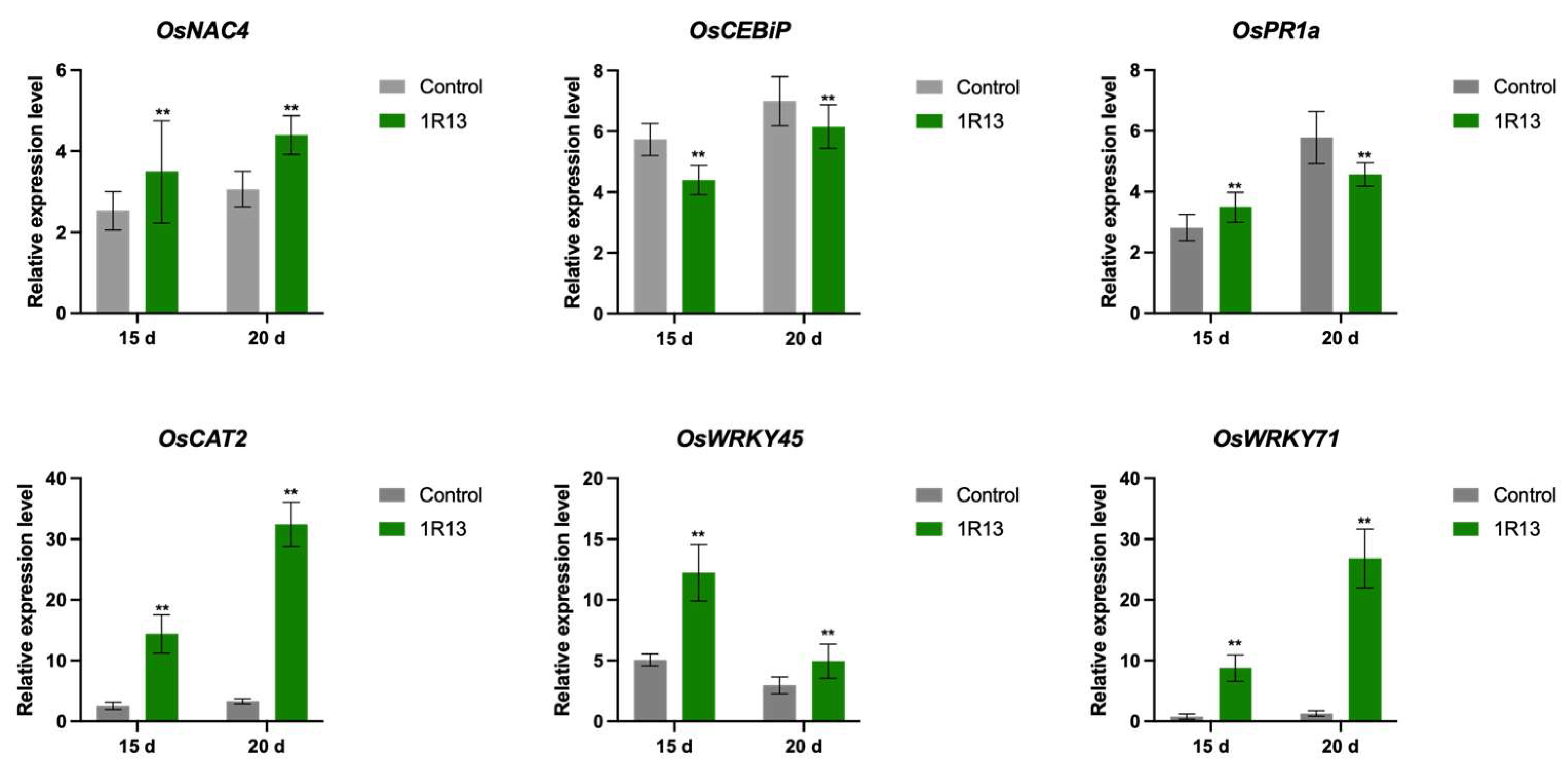 2.4. Quantification of Fungal Biomass in Roots by qRT-PCR