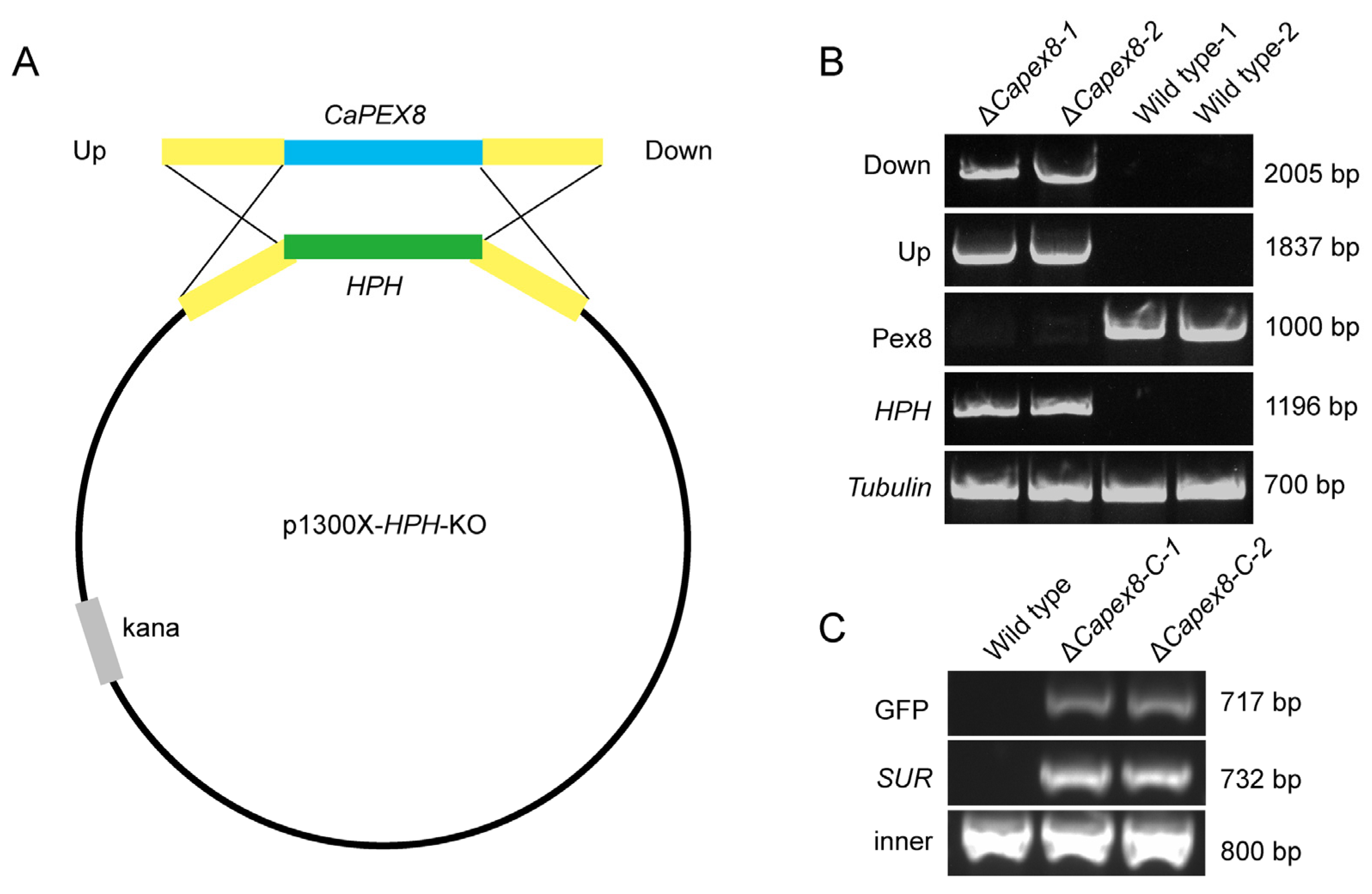 3.3. Construction and Validation of the CaPEX8 Knockout Mutant
