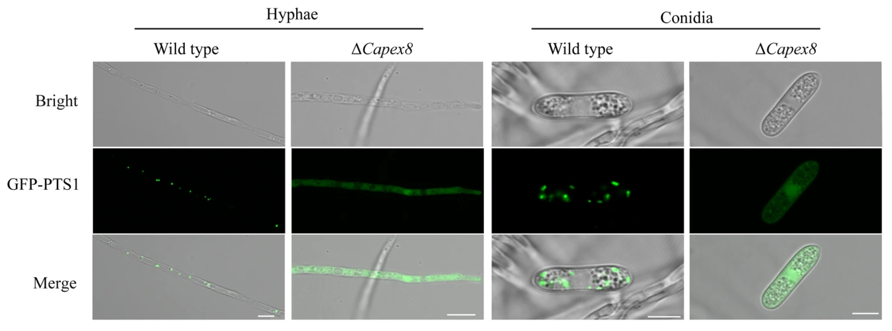 3.9. CaPex8 Is Essential for Peroxisome Biogenesis
