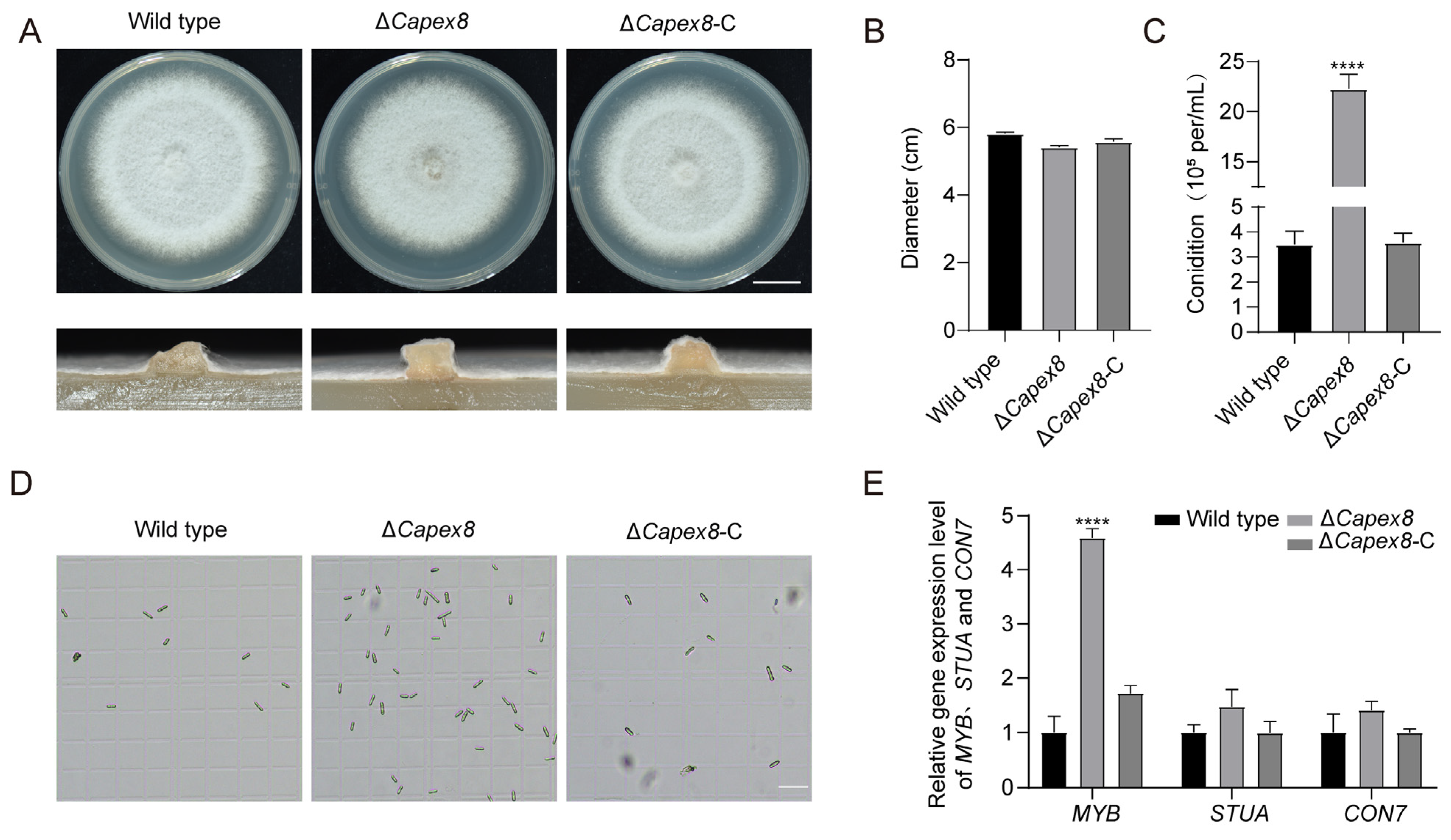 3.5. CaPex8 Is Involved in Conidiation in C. aenigma