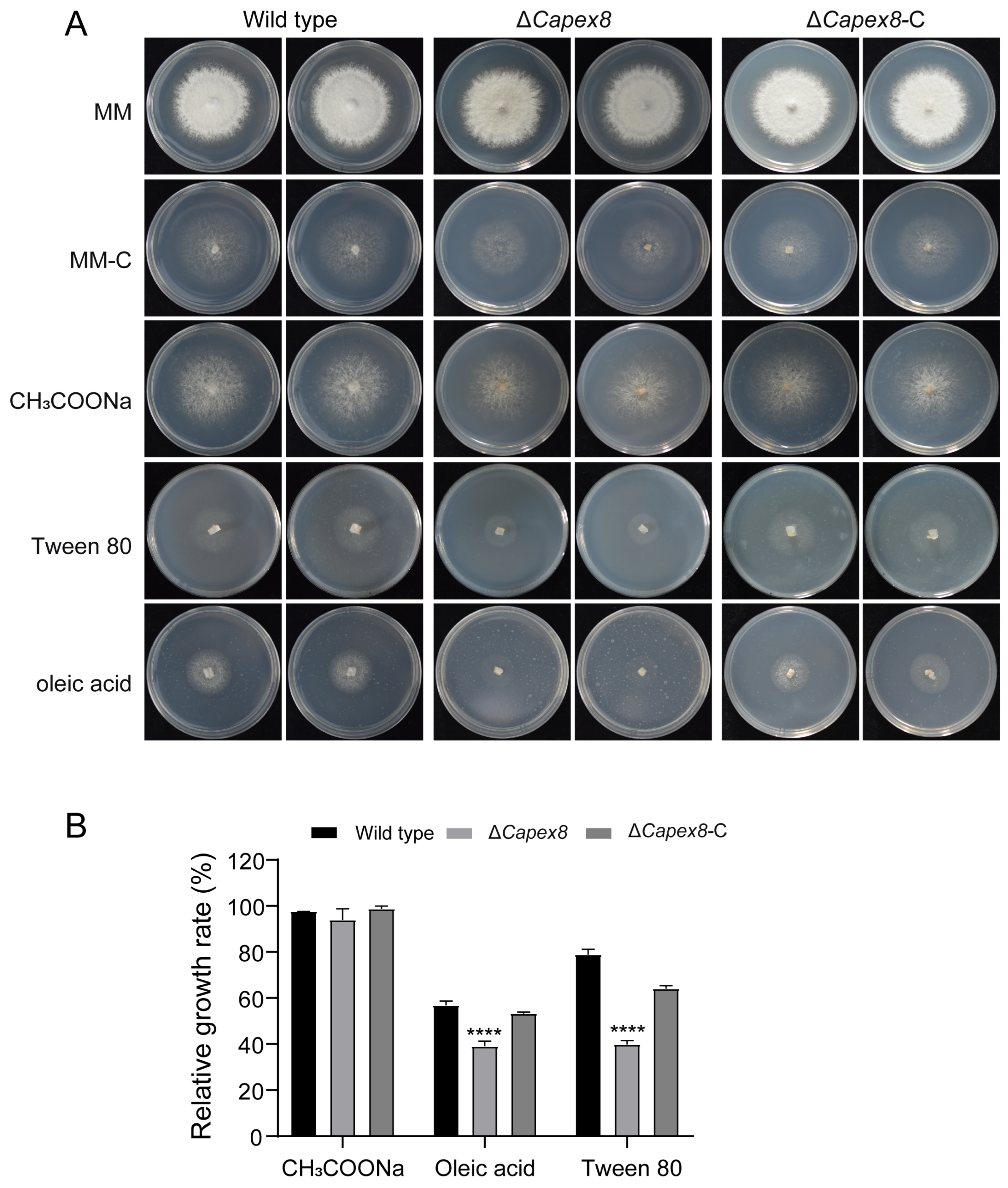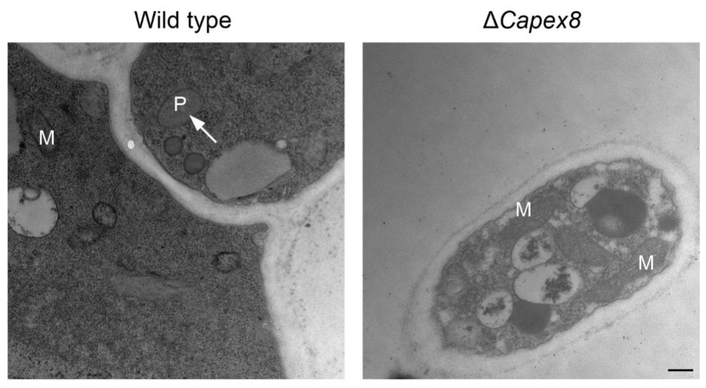 2.3. CaPEX8 Knockout and Complementation