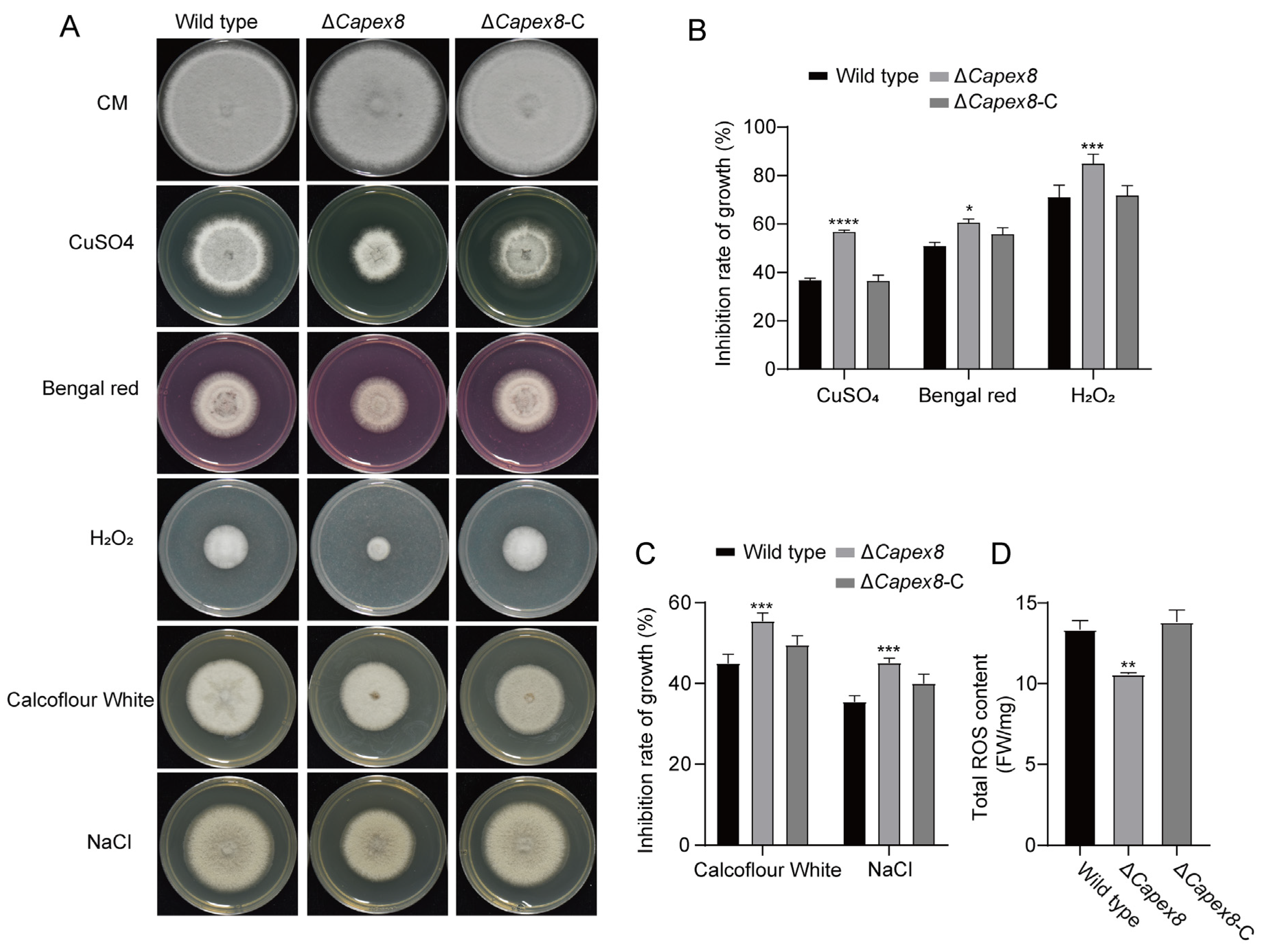 3.7. CaPex8 Is Essential for Multiple Stress Responses
