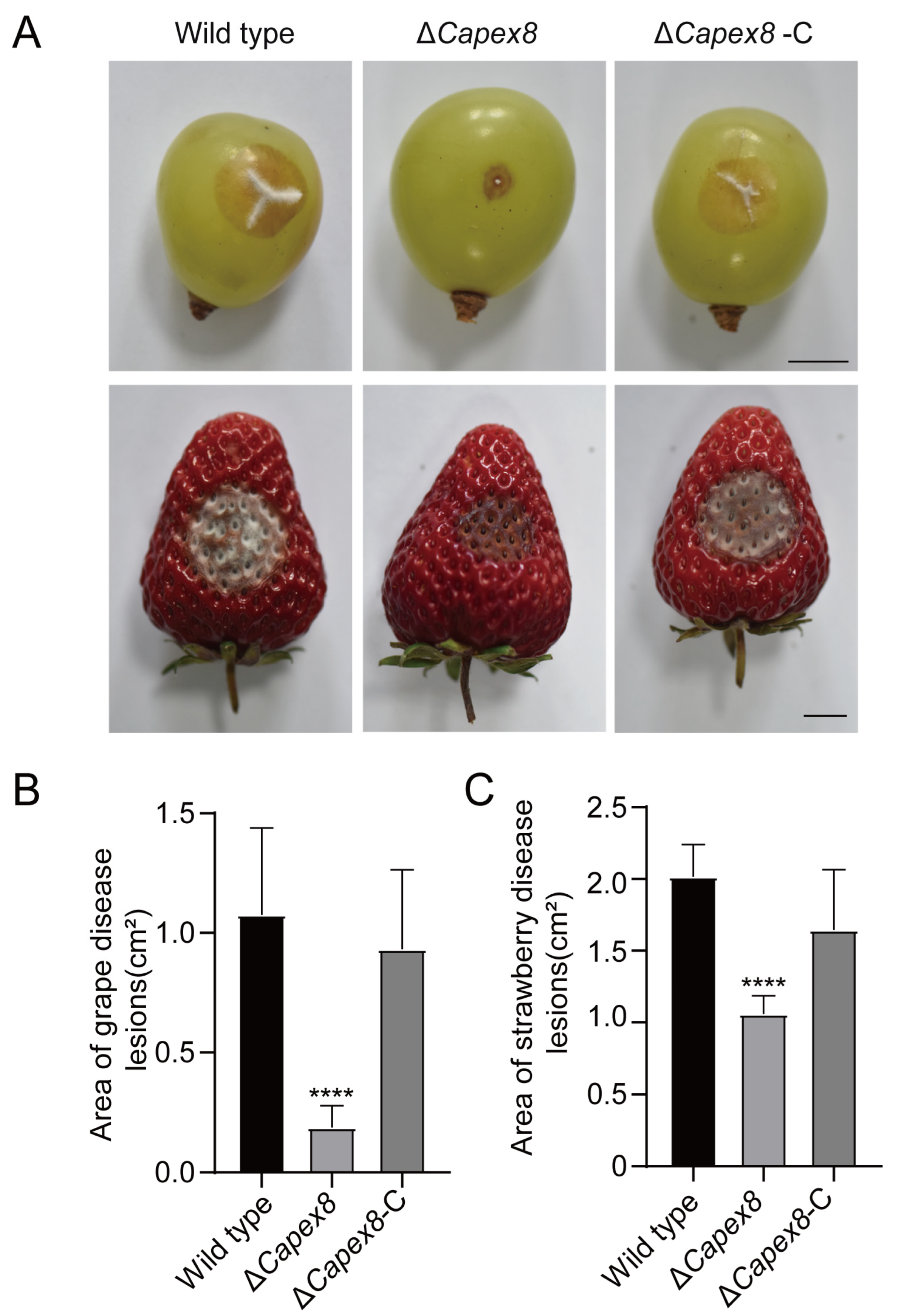 3.8. CaPex8 Is Required for Pathogenicity