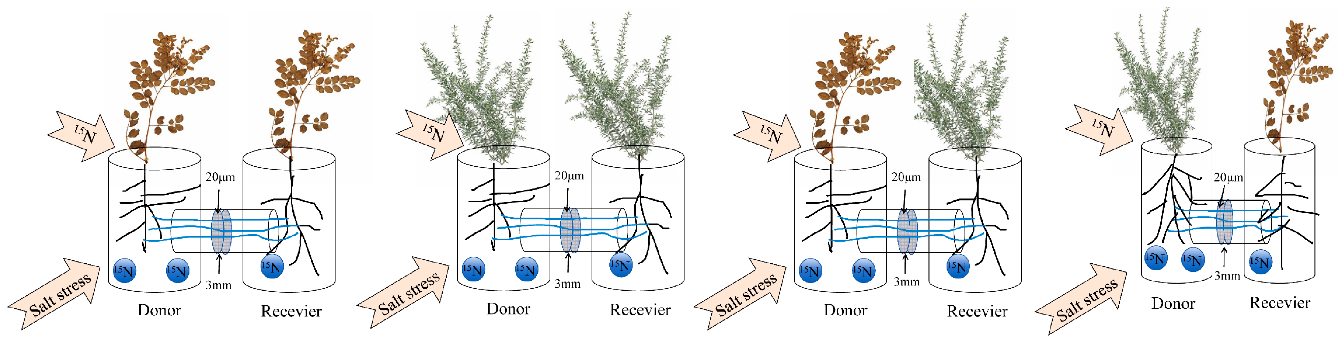 3.6. Effects of Salt Stress on 15N Transfer