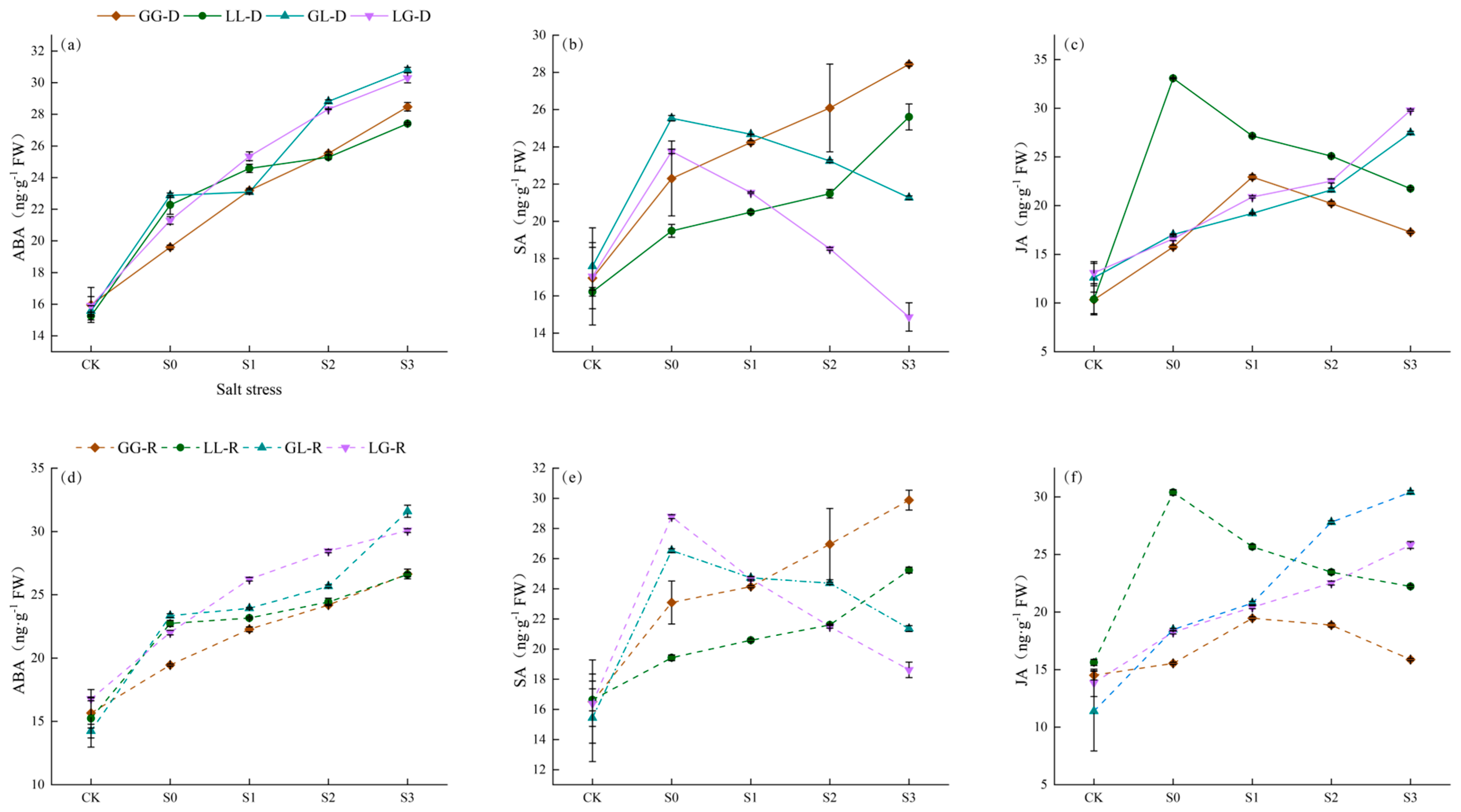 3.5. Effects on Plant Hormones Under Salt Stress
