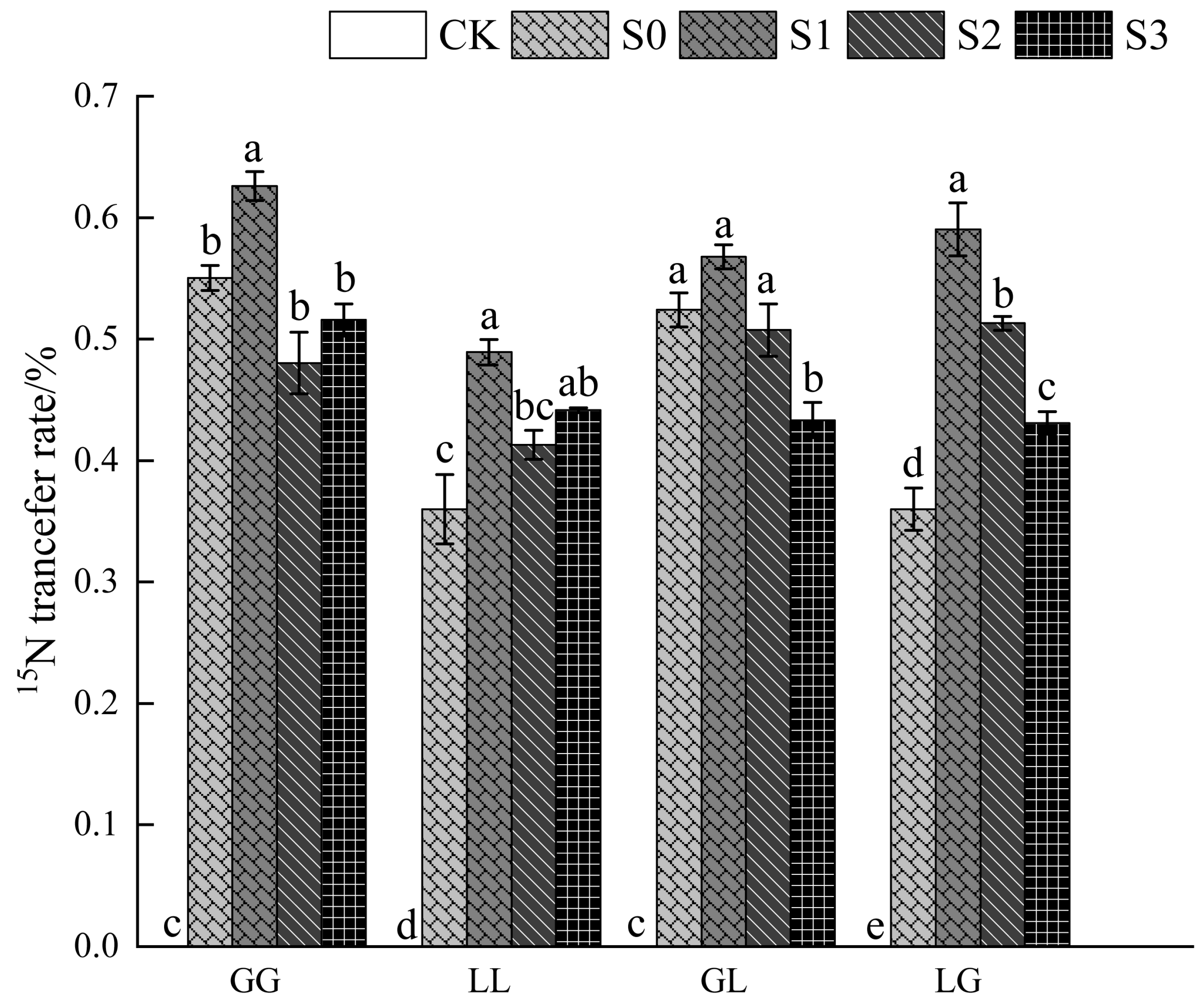 | G-G | CK | 3.55 ± 0.20 b | 3.46 ± 0.13 bc |