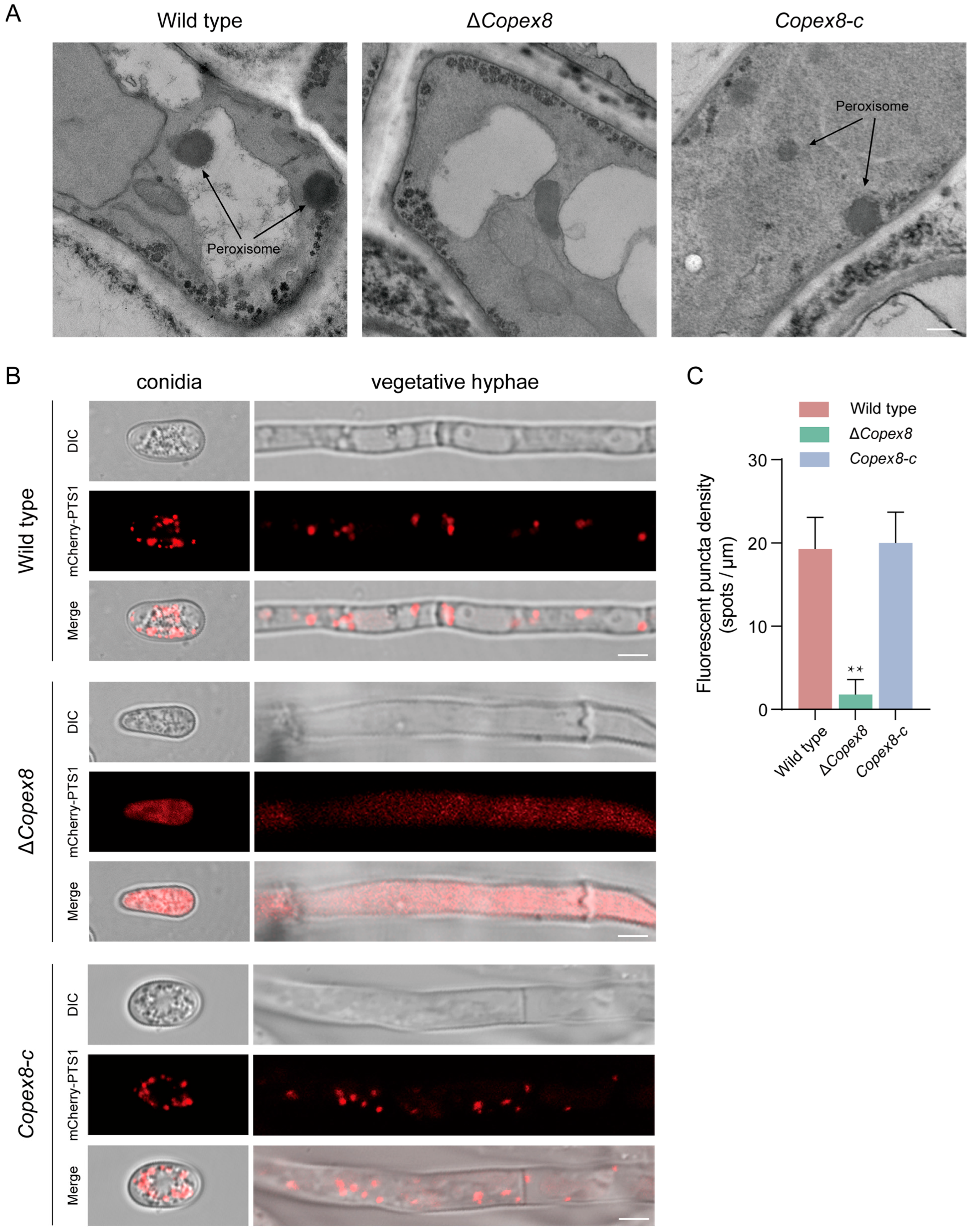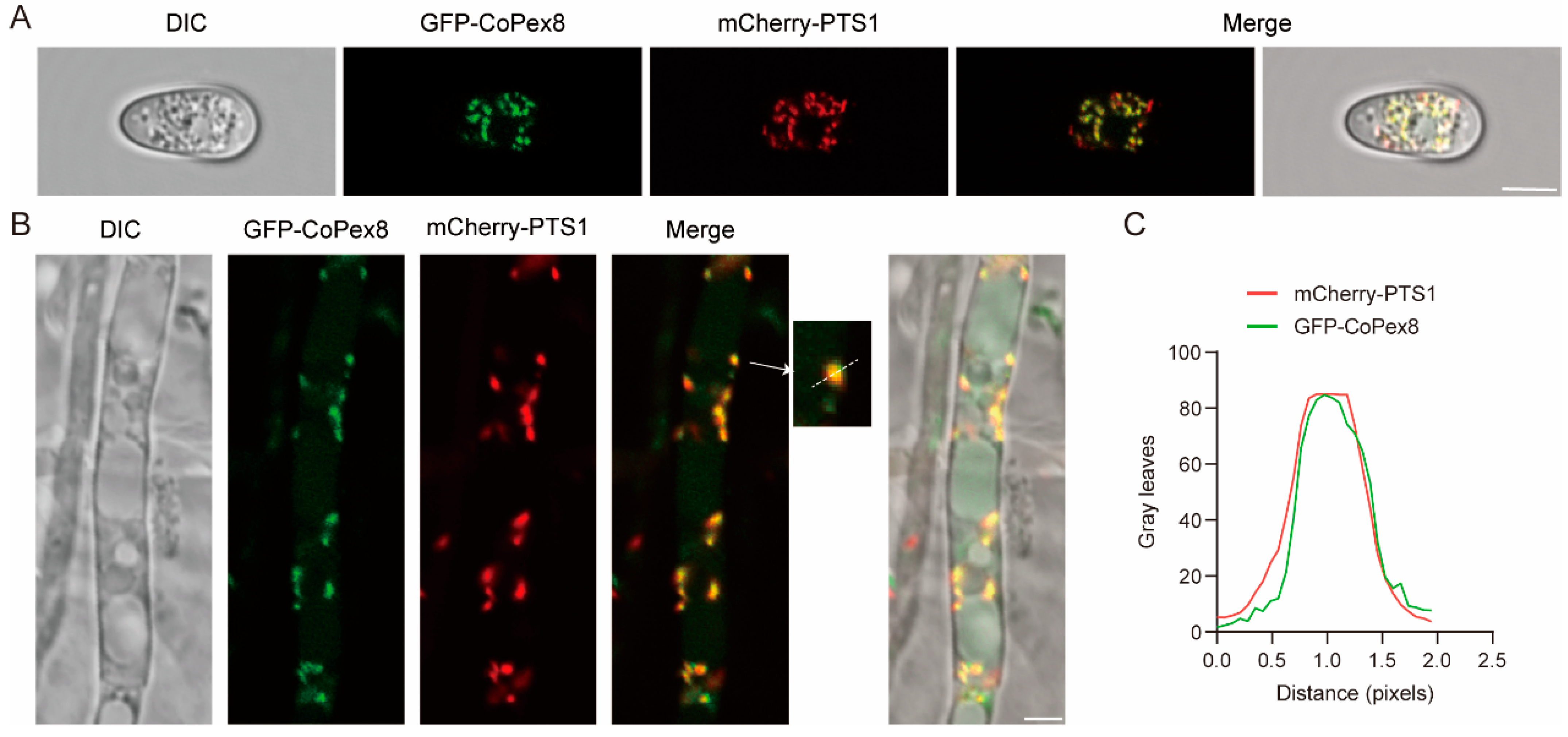 3.2. CoPex8 Is Distributed on the Peroxisomal Membrane
