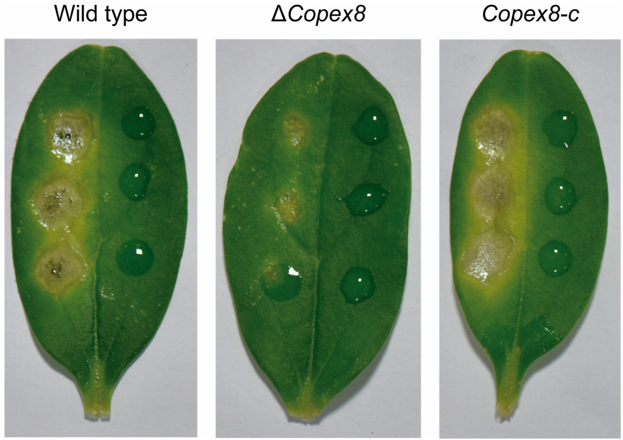 2.3. Generation of ΔCopex8 Mutants and Complemented Strains