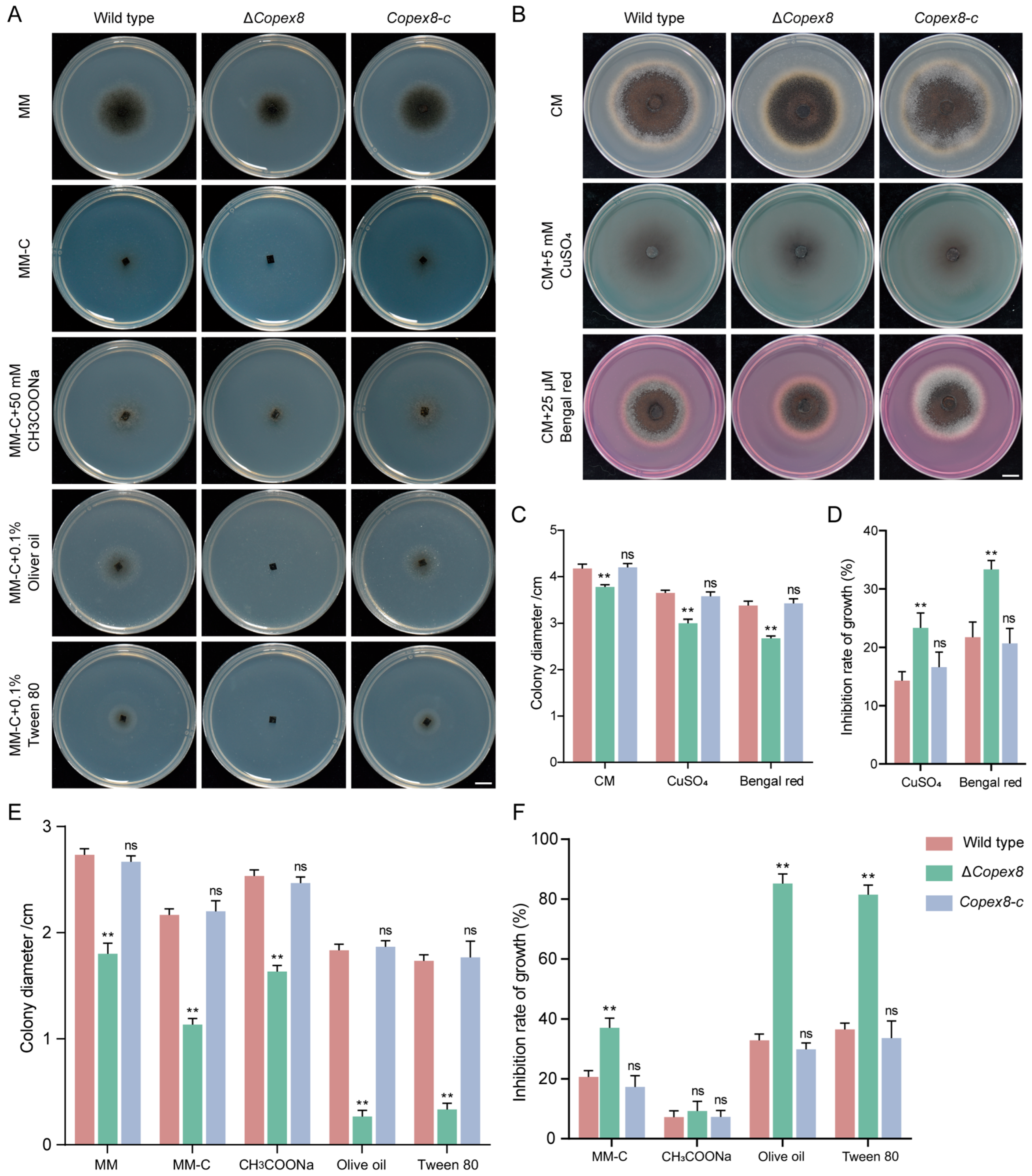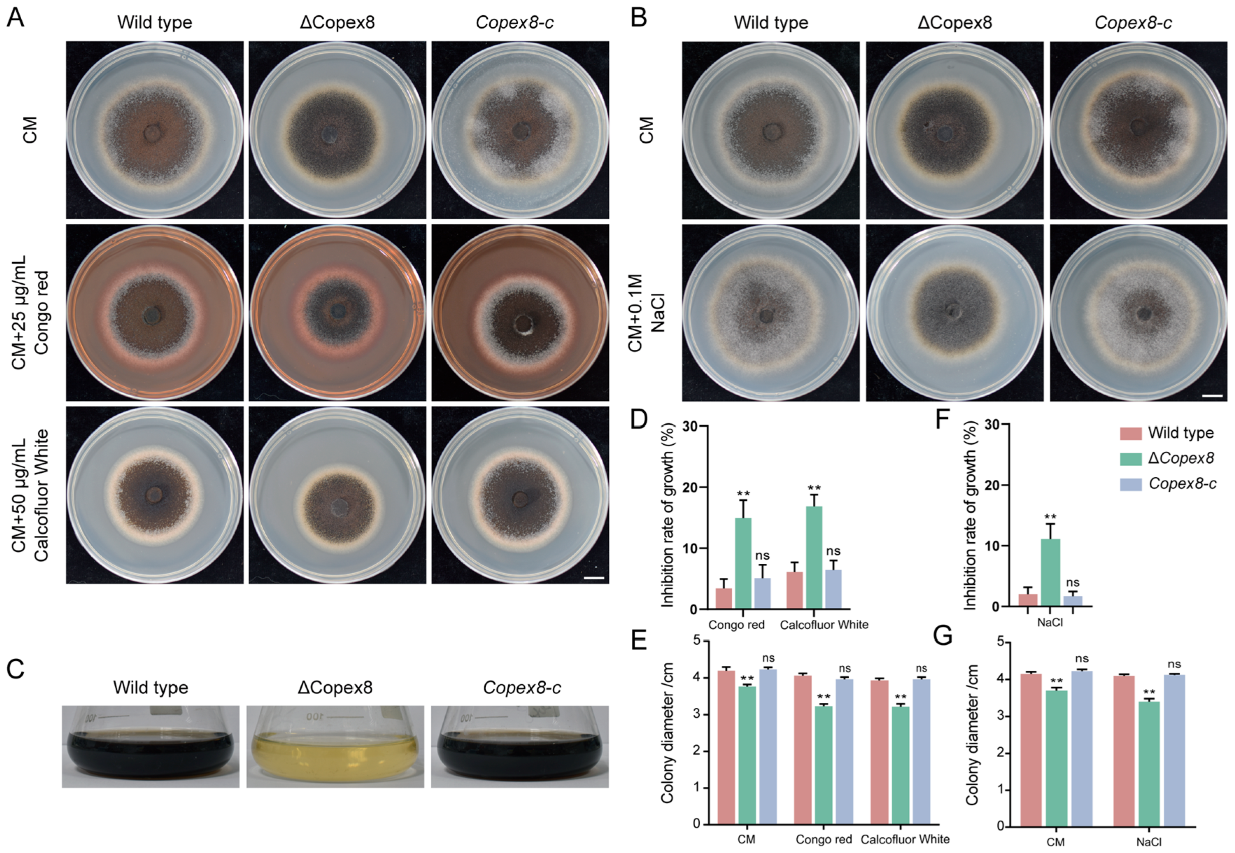 3.8. CoPEX8 Influences Cell Wall Integrity, Osmotic Stress Response, and Melanin Biosynthesis
