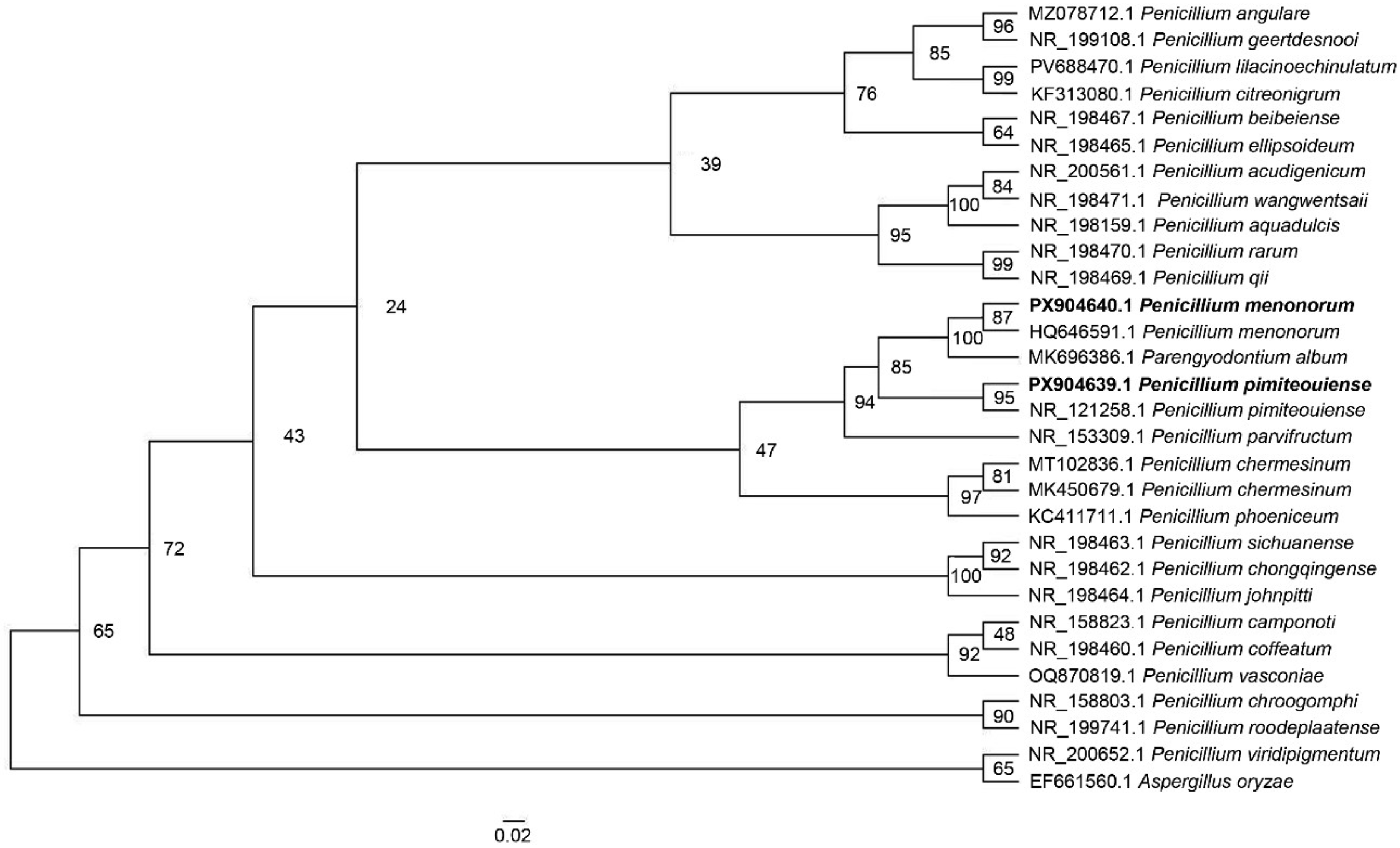 - Visagie, C.M.; Houbraken, J.; Frisvad, J.C.; Hong, S.-B.; Klaassen, C.H.W.; Perrone, G.; Seifert, K.A.; Varga, J.; Yaguchi, T.; Samson, R.A. Identification and Nomenclature of the Genus Penicillium. Stud. Mycol. 2014, 78, 343–371. [Google Scholar] [CrossRef]