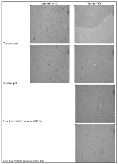 - Tafheem, S.; Zore, G. Effect of Hydrostatic Pressure on Candida Albicans Morphogenesis. Master’s Dissertation, Swami Ramanand Treerth Marathwada University, Nanded, India, 2013. [Google Scholar]