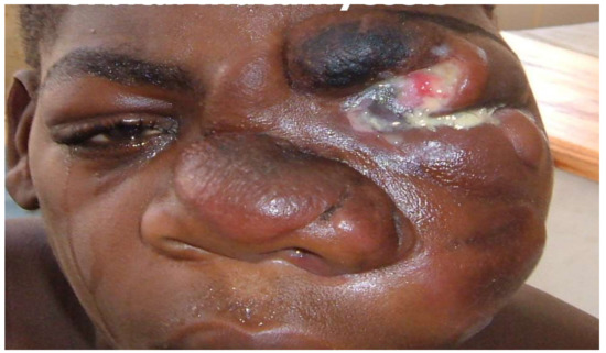 Mucormycosis (Figure 1) and histoplasmosis [11] in non-HIV patients are rarely seen. Mycetoma, chromoblastomycosis, and sporotrichosis have not been reported from Malawi, although several cases of sporotrichosis are documented in neighbouring Zimbabwe [17]. Allergic and invasive fungal rhinosinusitis and fungal balls of the sinuses probably also occur but there are no data.