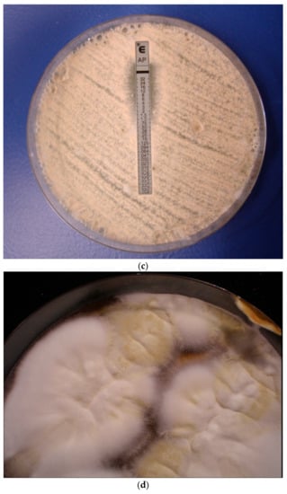 - Jukic, E.; Blatzer, M.; Binder, U.; Mayr, L.; Lass-Flörl, C.; Lackner, M. Impact of morphological sectors on antifungal susceptibility testing and virulence studies. Antimicrob. Agents Chemother. 2017, 61, e00755-17. [Google Scholar] [CrossRef] [PubMed]